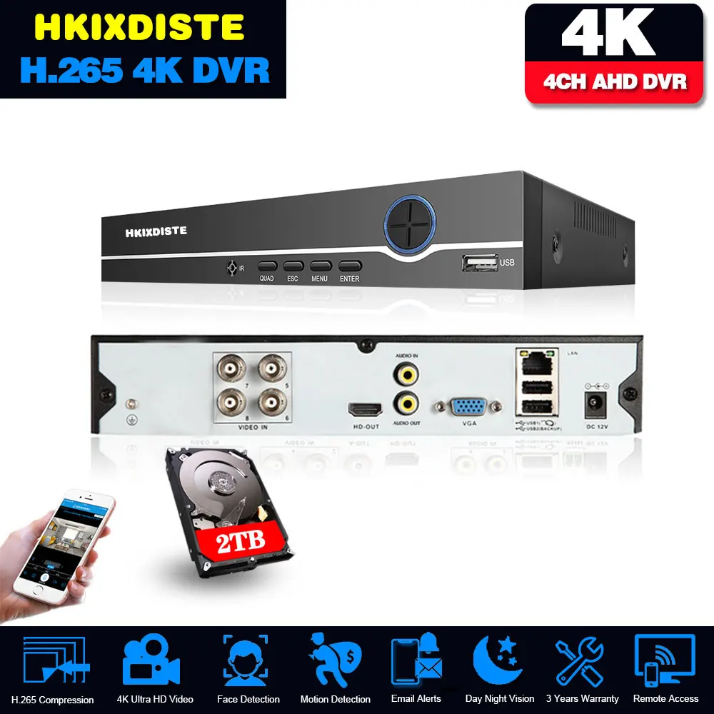 HKIXDISTE 4CH 8CH 16CH 4K 8MP 5MP 1080P Гибридный AHD DVR Запись AI Обнаружение движения человека Обнаружение лица и умное воспроизведение оповещения по электронной почте CCTV аудио видео регистратор видеонаблюдения 4 8 16 каналов 8.0MP 5.0MP 1080P NVR для безопасности система камеры