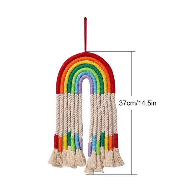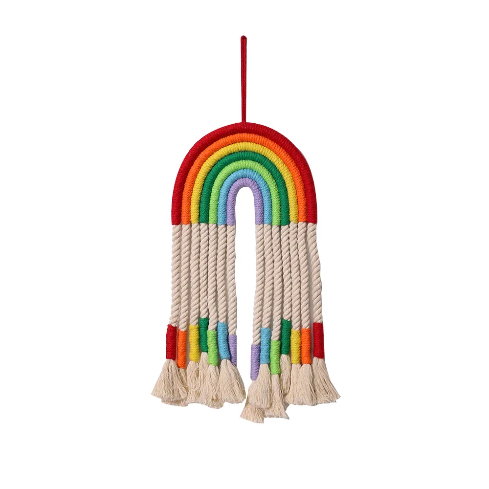Скандинавский макраме, Радужный настенный гобелен, украшение для маленьких девочек, детской комнаты, аксессуары для декора в стиле бохо, красочные настенные украшения ручной работы