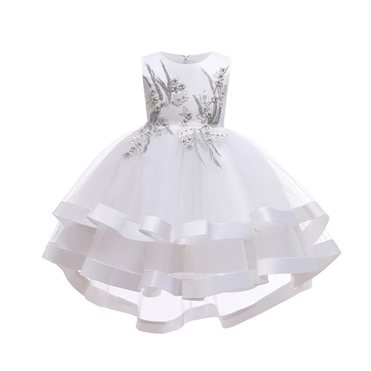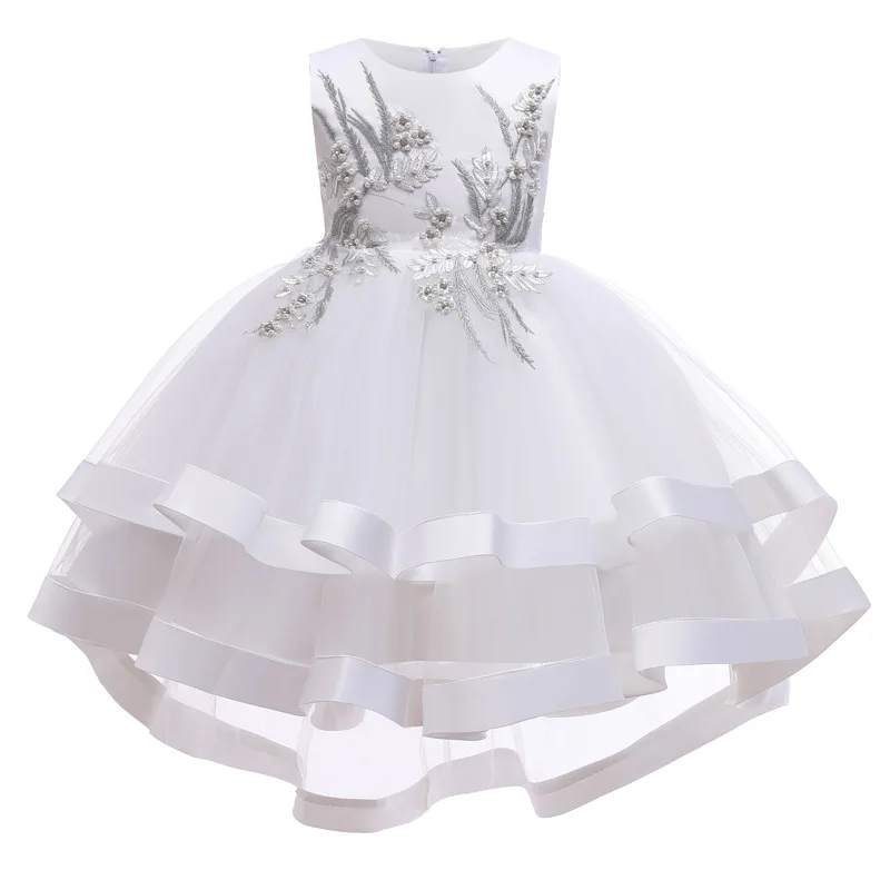 Белое Пышное Платье для девочек, длинное детское платье принцессы с лепестками для первого причастия, элегантное детское платье для девочек на свадьбу, день рождения