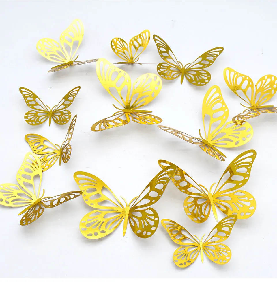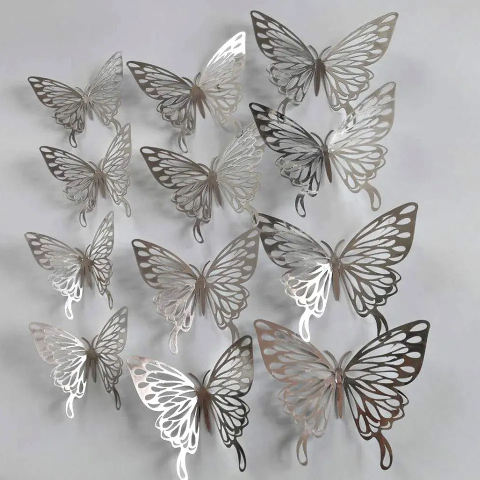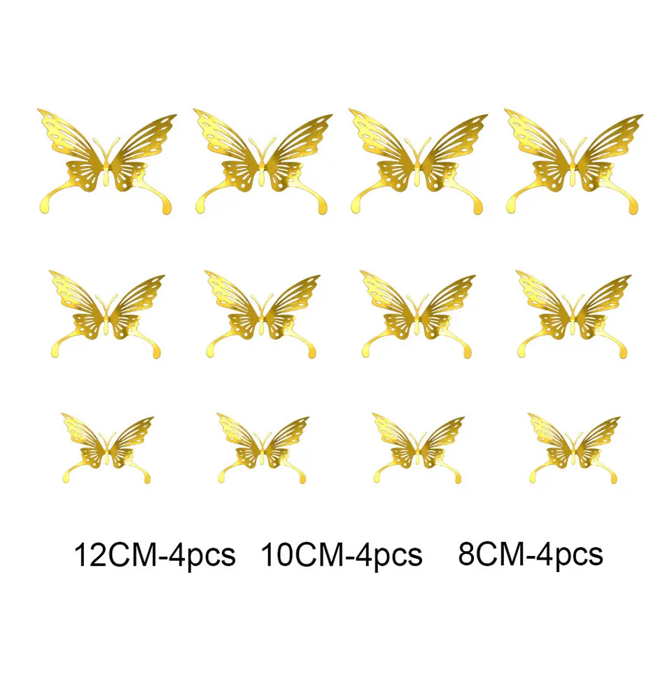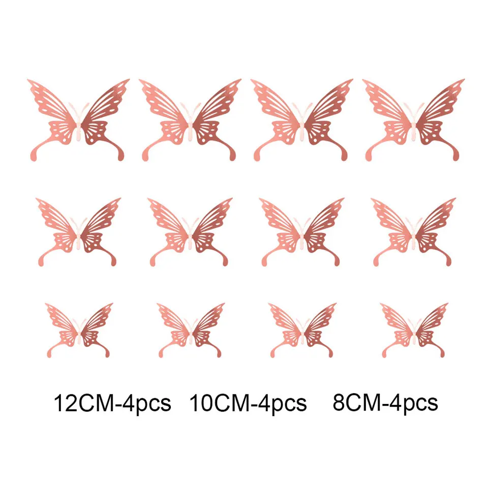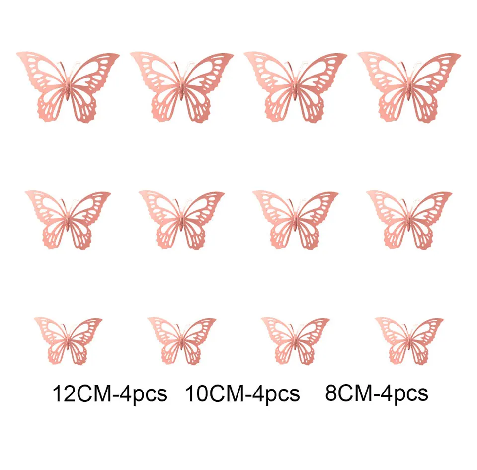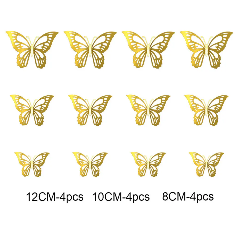 12 шт. 3D наклейки на стену полые розовые Золотыесеребряные бабочки настенные наклейки DIY Искусство домашний декор настенные наклейки свадебное украшение