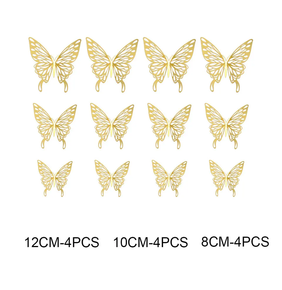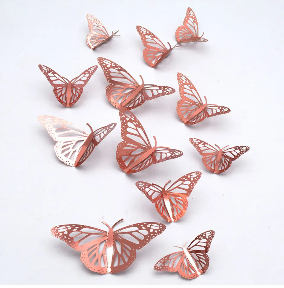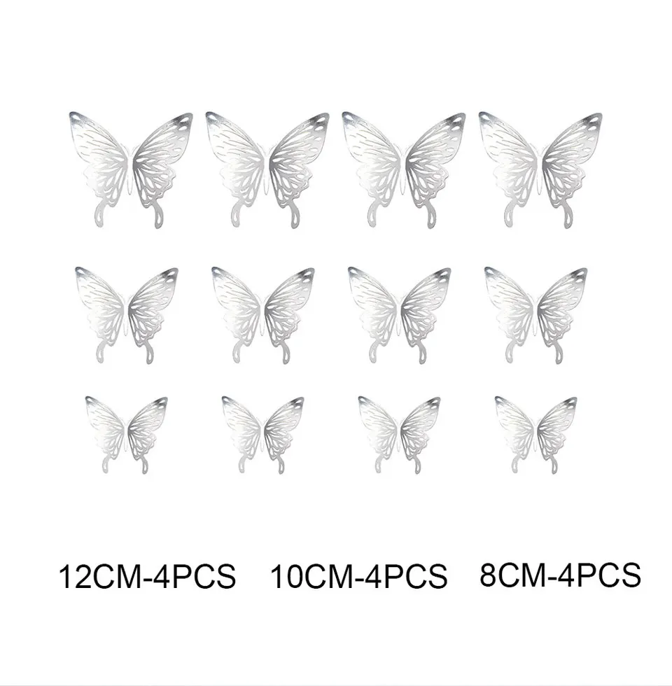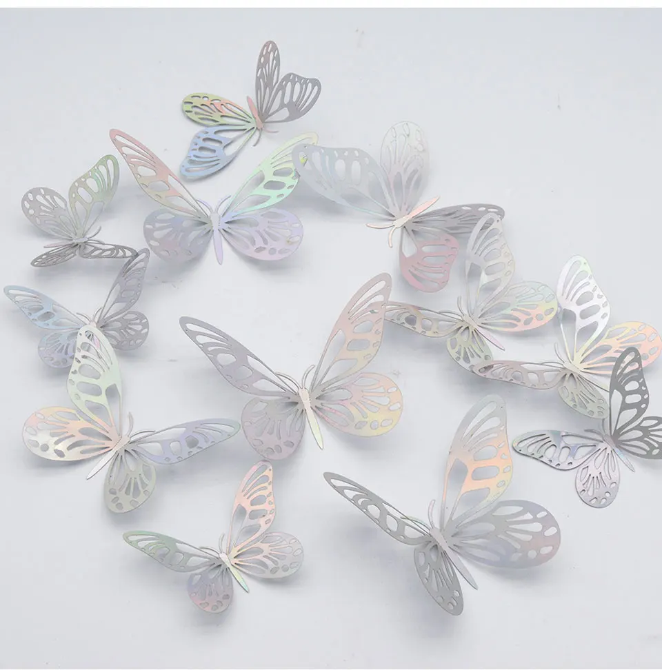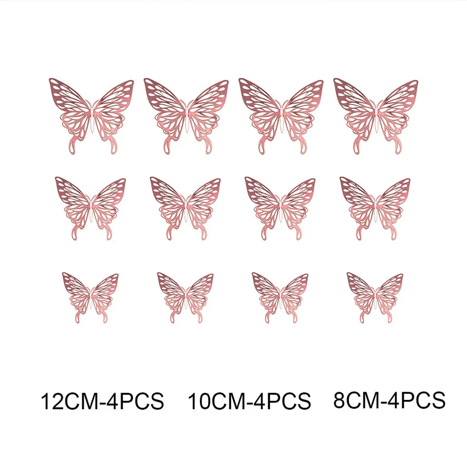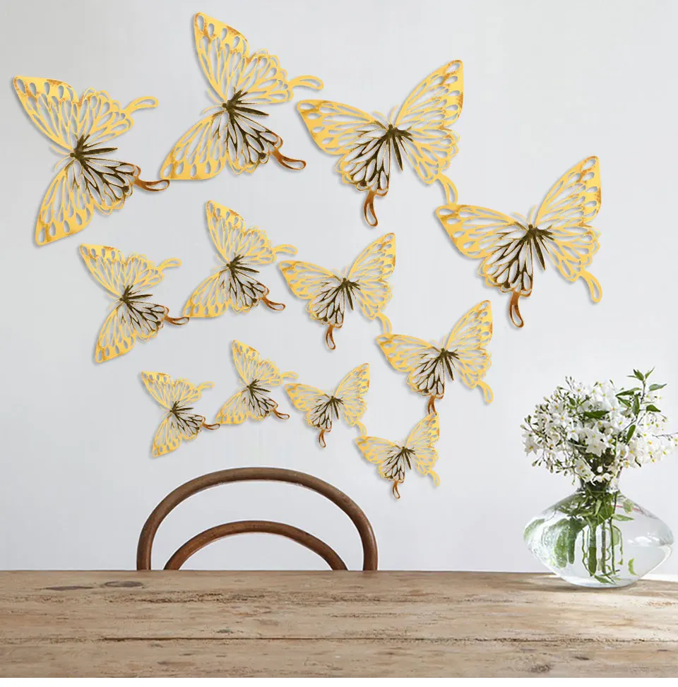 12 шт. 3D наклейки на стену полые розовые Золотыесеребряные бабочки настенные наклейки DIY Искусство домашний декор настенные наклейки свадебное украшение