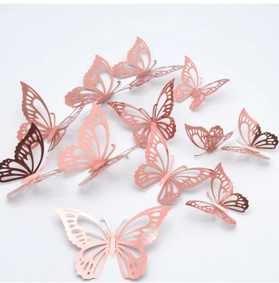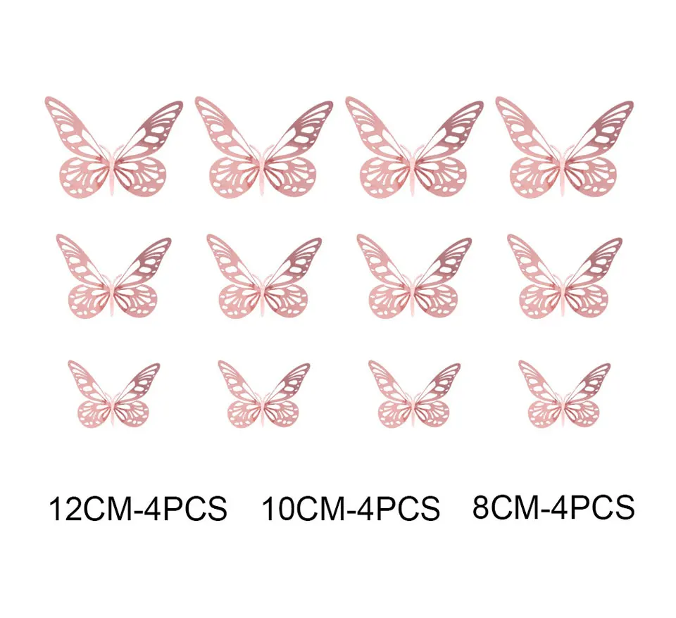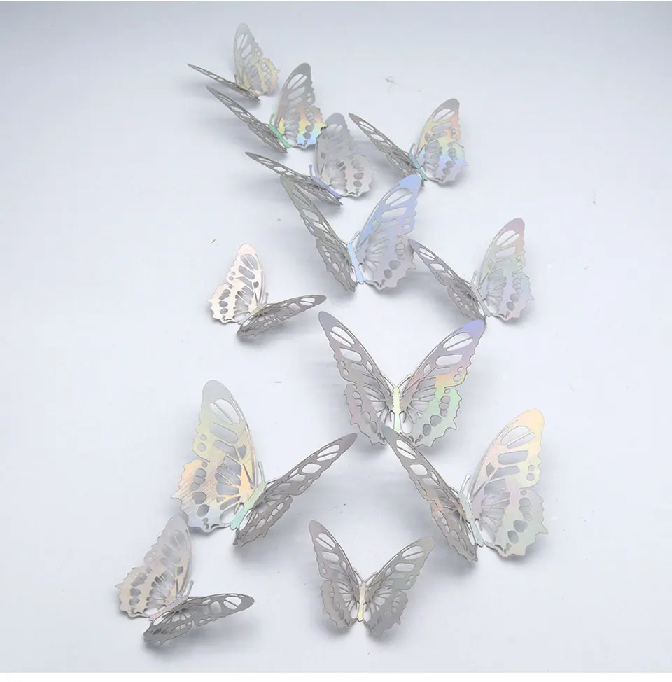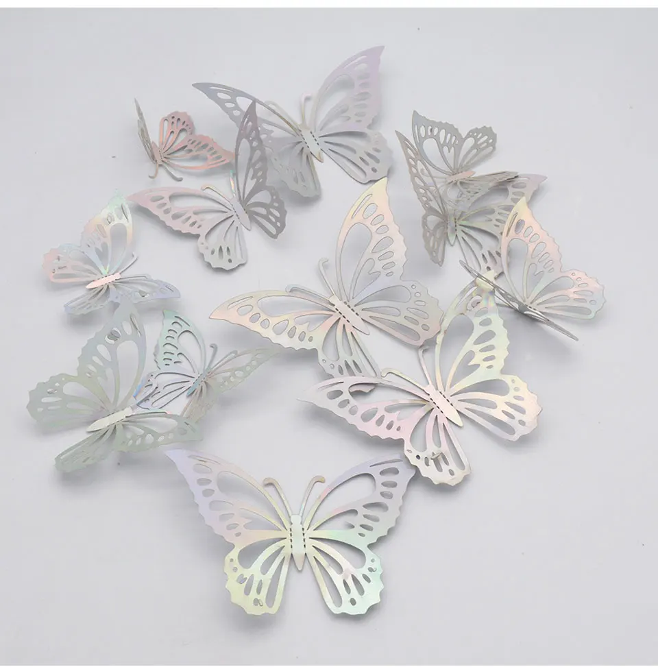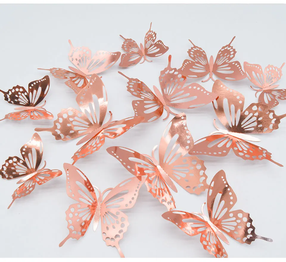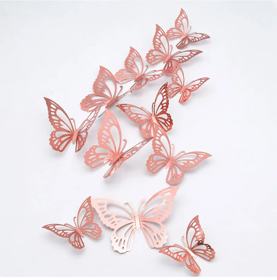 12 шт. 3D наклейки на стену полые розовые Золотыесеребряные бабочки настенные наклейки DIY Искусство домашний декор настенные наклейки свадебное украшение