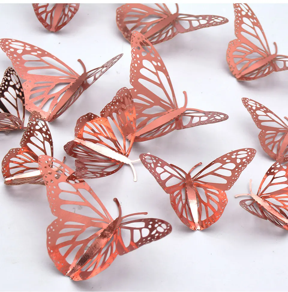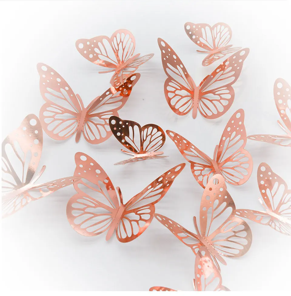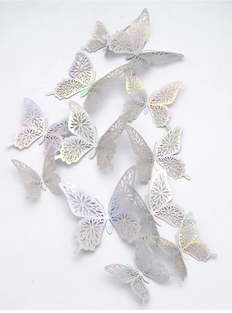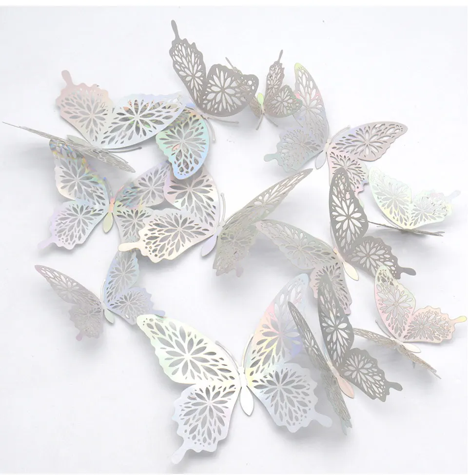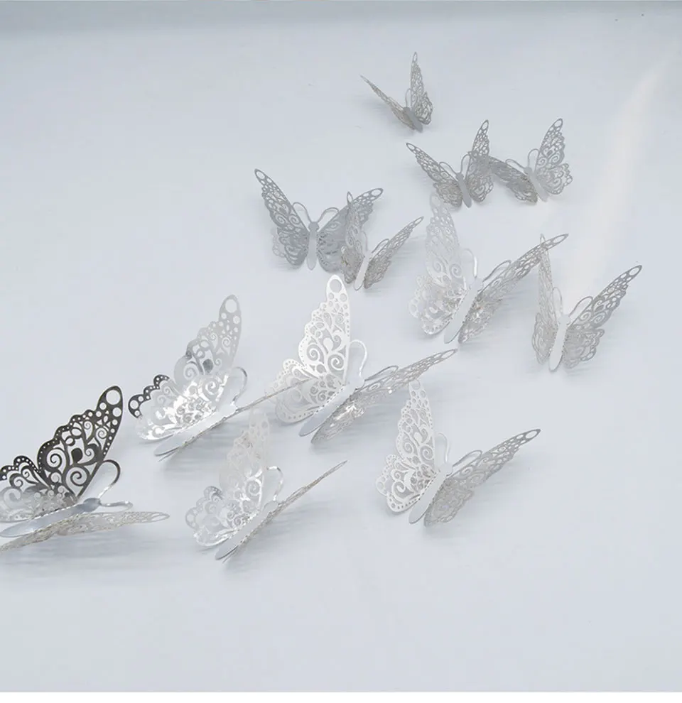 12 шт. 3D наклейки на стену полые розовые Золотыесеребряные бабочки настенные наклейки DIY Искусство домашний декор настенные наклейки свадебное украшение