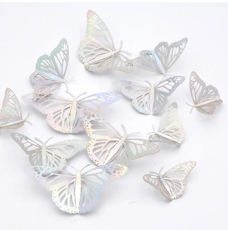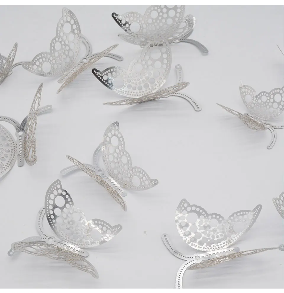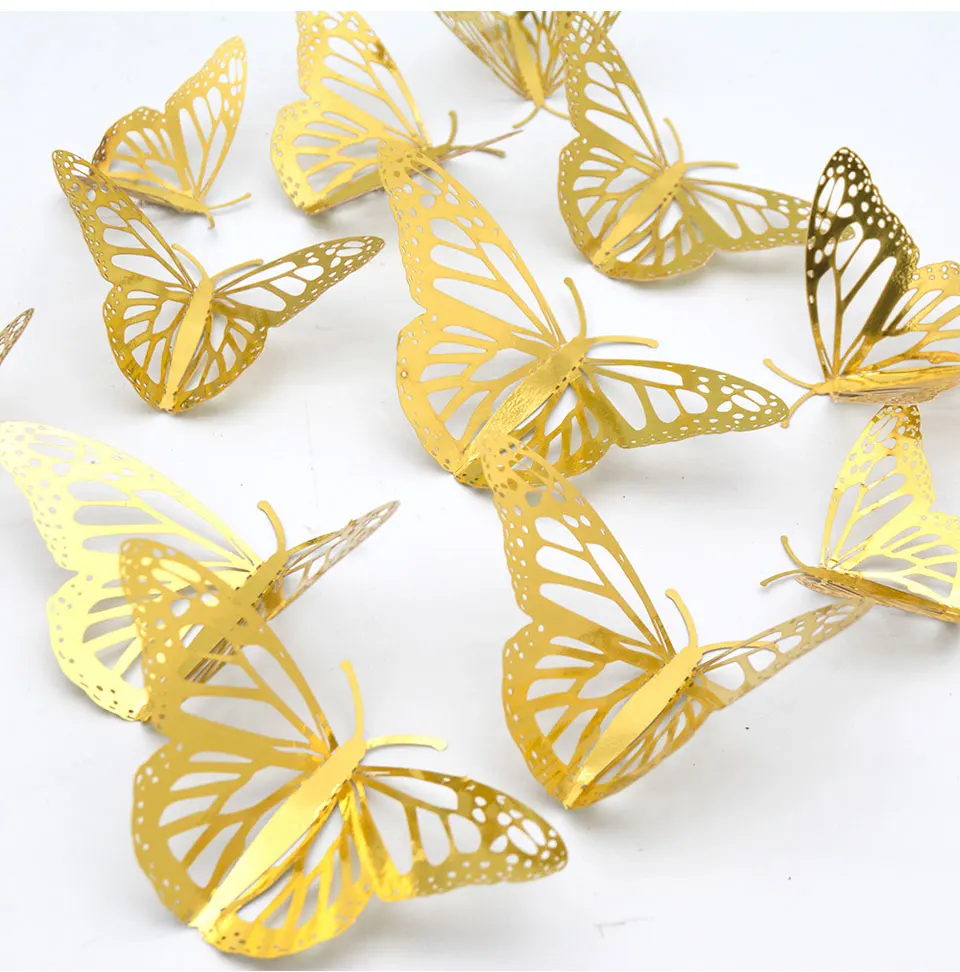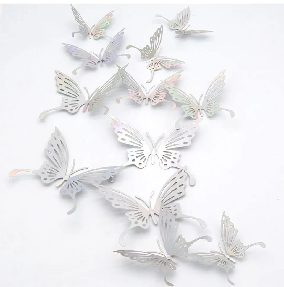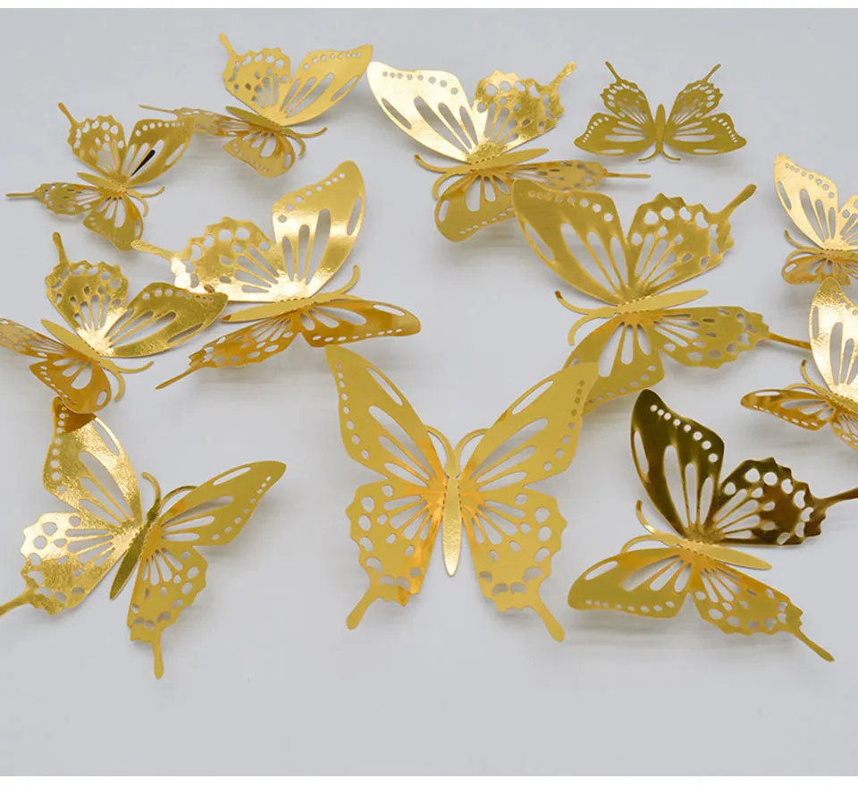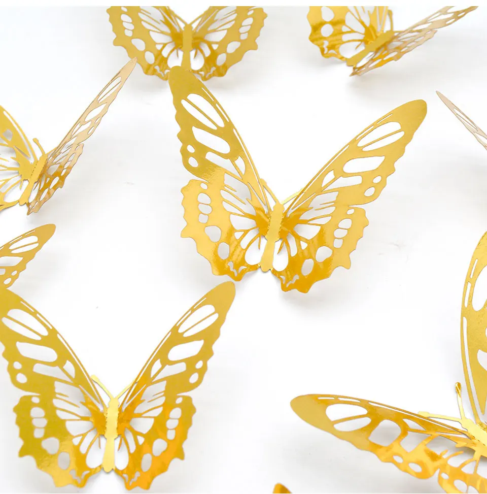 12 шт. 3D наклейки на стену полые розовые Золотыесеребряные бабочки настенные наклейки DIY Искусство домашний декор настенные наклейки свадебное украшение