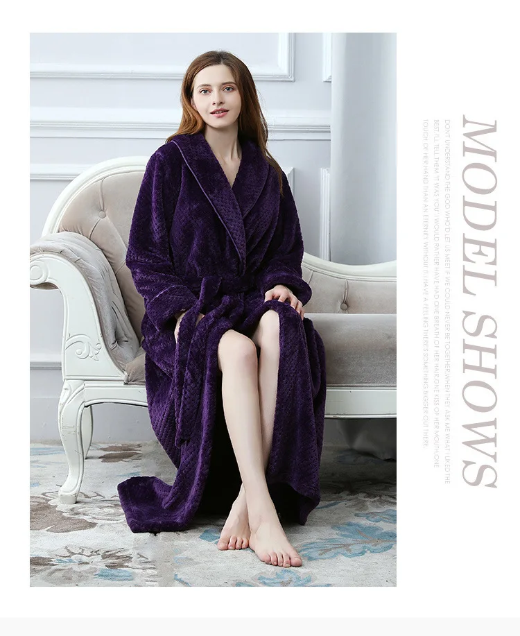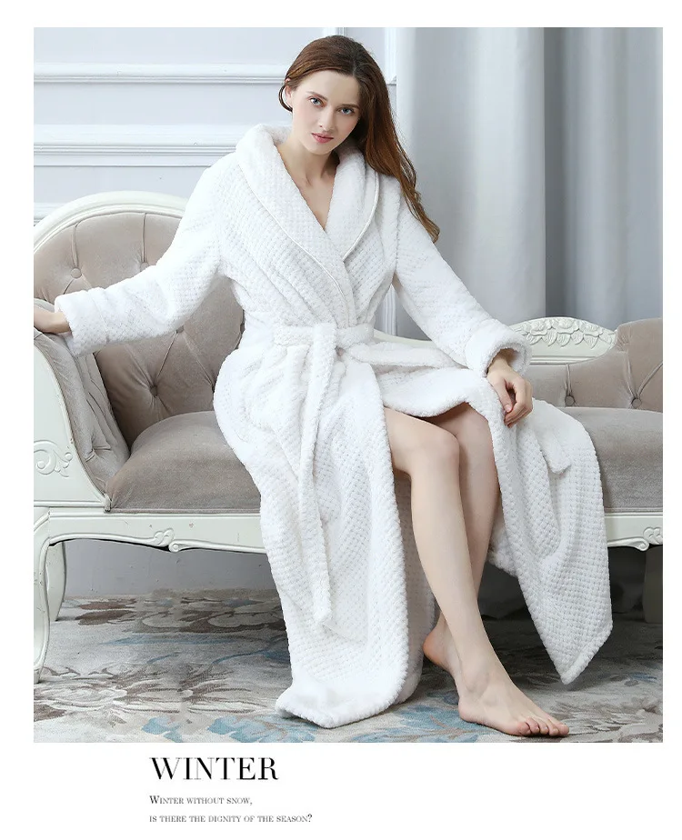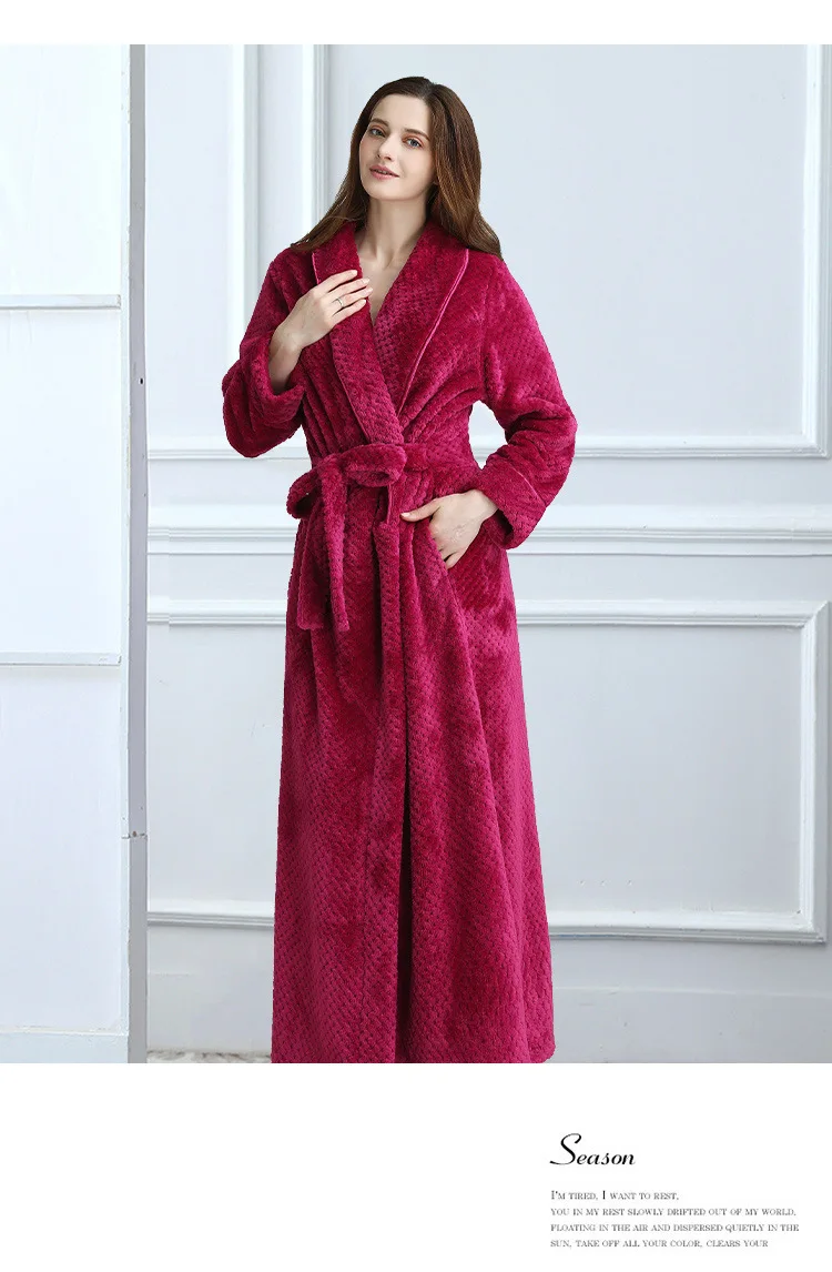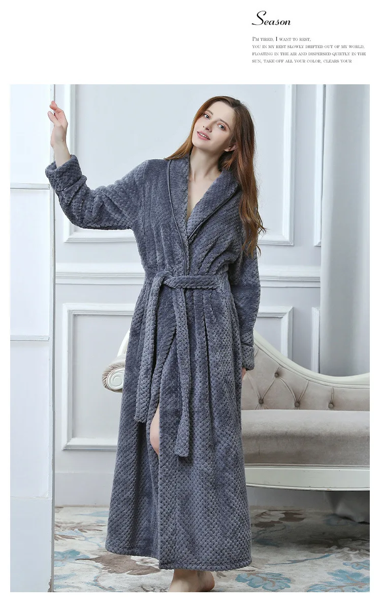 167 зимний длинный теплый абсорбирующий махровый халат из кораллового флиса, кимоно, мужское Вафельное полотенце, халат, одежда для сна, женский халат