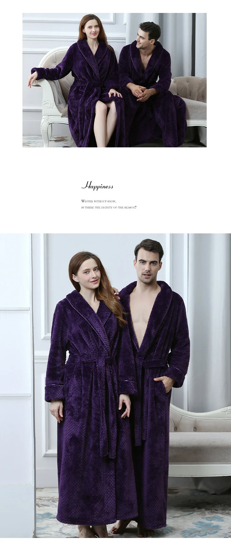 167 зимний коралловый флис длинный толстый теплый абсорбирующий махровый банный халат кимоно для мужчин Вафельное полотенце банный халат для сна женский халат