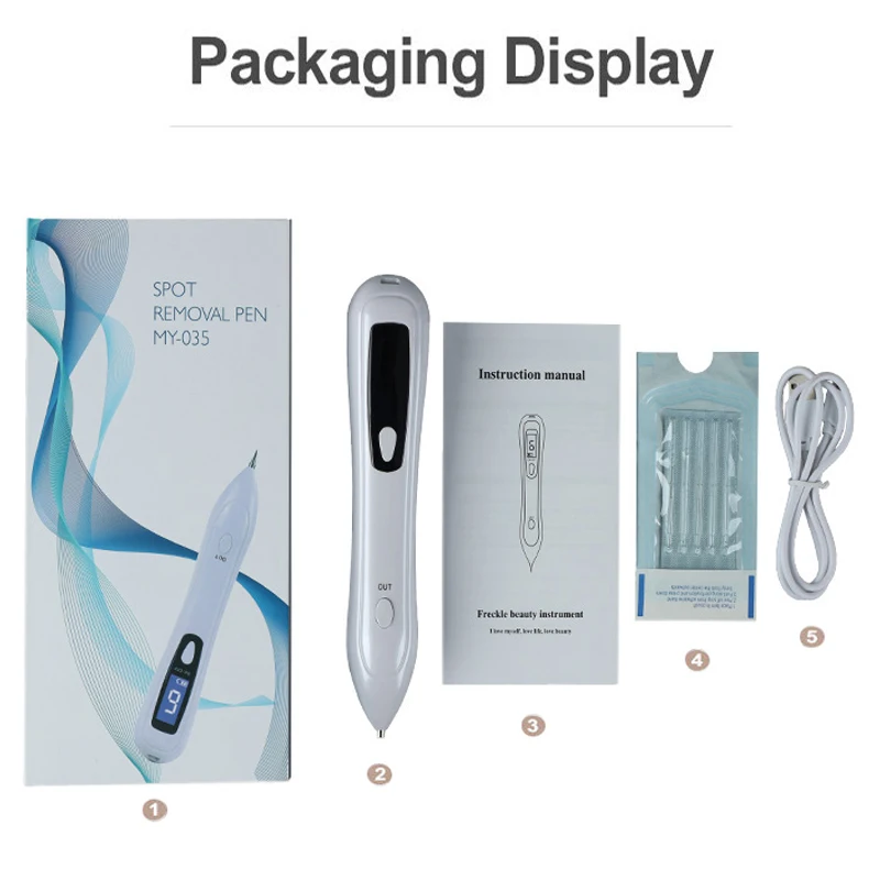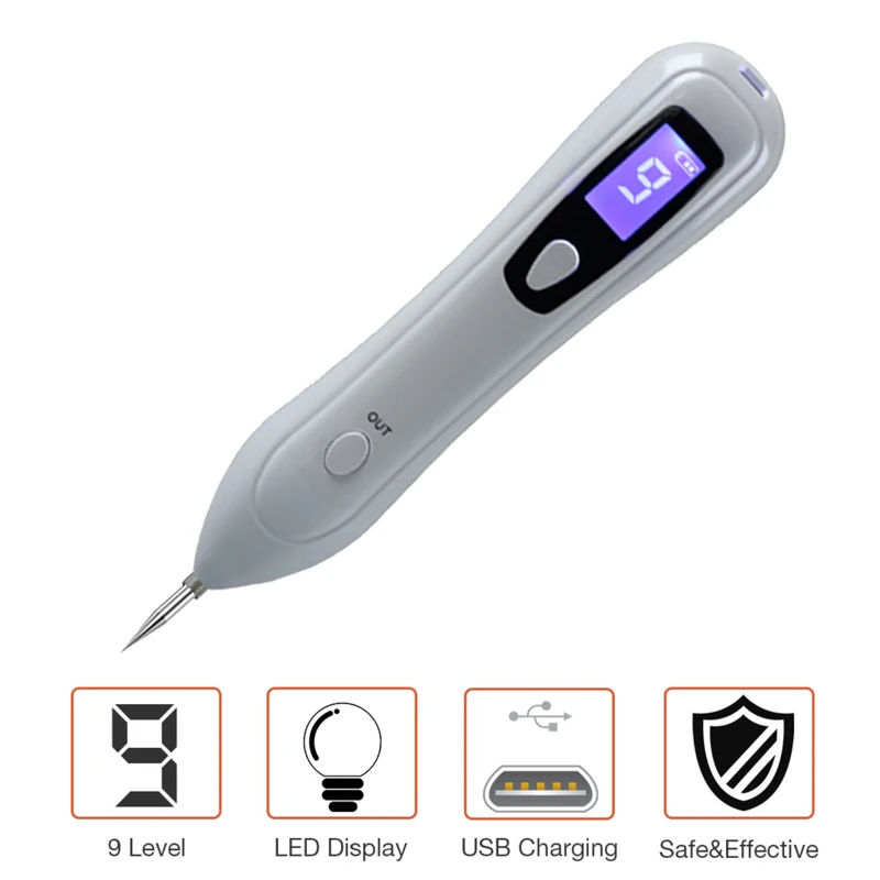 Используйте новейшие технологии, микрокомпьютерное управление, безопасно, удобно и быстро. Он имеет 9 видов интенсивности для различных процедур. Более низкий уровень используется на пятнах и веснушках. Сильный уровень используется на родинок и бирках кожи. Удалите Пятно без крови. Точечная ручка из нержавеющей стали Нетоксичная, Гигиеничная, непростая в ржавчине для безопасного использования. ЖК-дисплей показывает, сколько электричества и уровня интенсивности. Заряжайте напрямую с помощью USB линии, легко носить с собой и легко управлять. Аккумулятор большой емкости. Он может работать более 5 часов после зарядки.