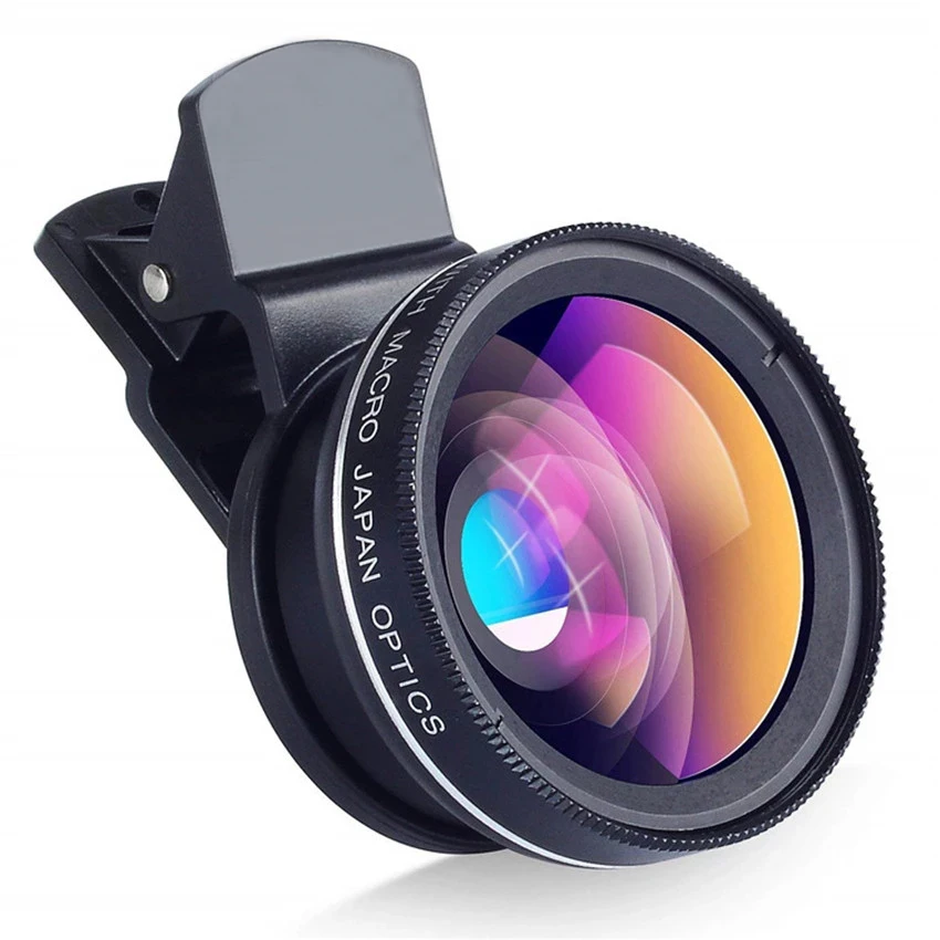 1. 2 в 1 комплект линз включает в себя 0. Широкоугольный объектив 45X + макрообъектив 12,5x-идеально подходит для съемки больших диапазонов, особенно идеально подходит для групповых снимков с 0. Широкоугольный объектив 45X. Макрообъектив предназначен для детального фотографирования крошечного объекта. 2. Изготовлен из алюминиевого сплава и многослойного стекла с покрытием, чтобы минимизировать ghosting, отражения, блики объектива и другие артефакты. 3. Съемный мягкий резиновый зажим легко регулируется и не оставляет царапин или следов на вашем мобильном устройстве. 4. Портативный и прочный: высококачественный алюминиевый материал увеличивает долговечность. Уникальный внешний вид объектива камеры делает его стильным и гладким. Портативный дизайн также позволяет положить его в карман и делать удивительные фотографии везде. 5. Примечание: широкоугольный объектив и макрообъектив соединяются вместе. Чтобы использовать макрообъектив, вам нужно отделить два объектива, отвинчивая. Затем, сохраняя расстояние от объекта на 1-2 см, вы получите более четкие фотографии. Чтобы использовать широкоугольный объектив, вы должны оставить два объектива привинченными.