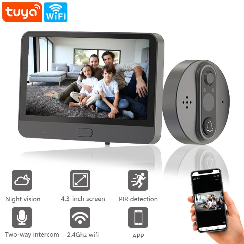 Дверной видеоглазок с Wi-Fi, камера для наблюдения за дверным звонком, с ЖК-монитором, ночным видением, управлением через приложение Tuya, для домашней безопасности в квартире