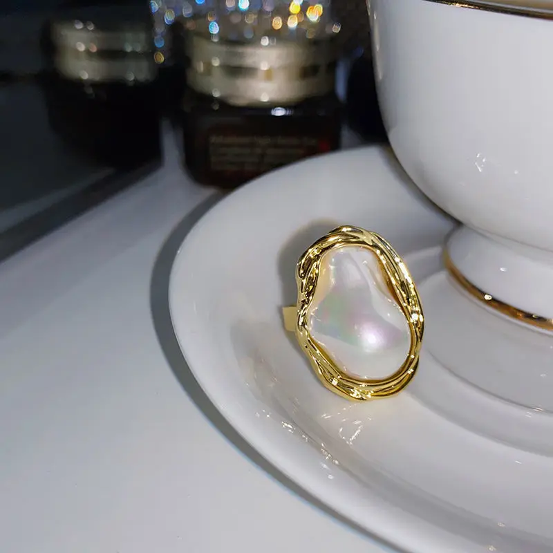 Женское кольцо с большим барочным жемчугом, регулируемое кольцо, юв...