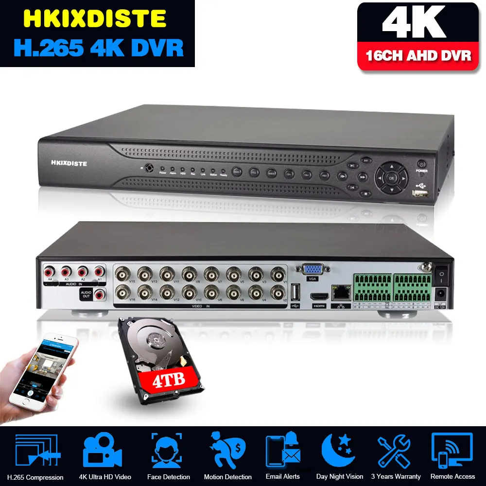 16CH 4K 8MP 5MP 4MP 1080P Гибридный AHD DVR детектор движения человека CCTV видео регистратор видеонаблюдения 16 каналов 8CH DVR система безопасности камеры