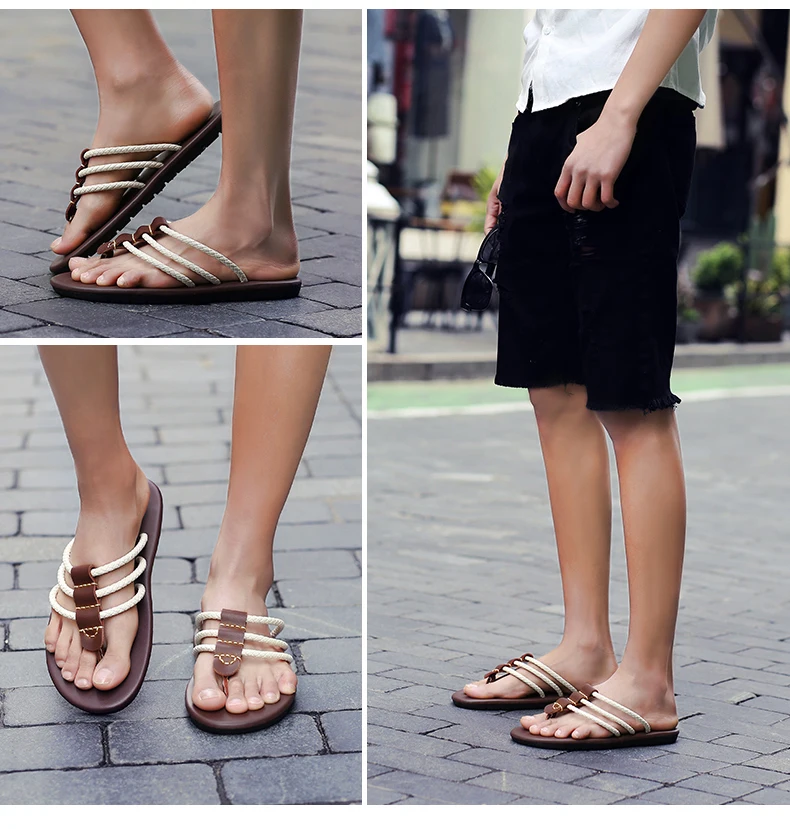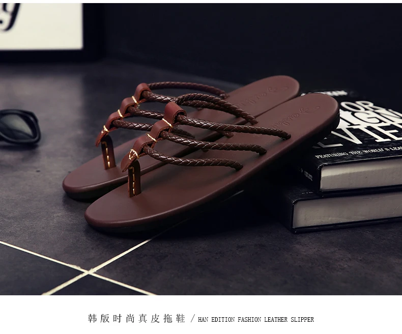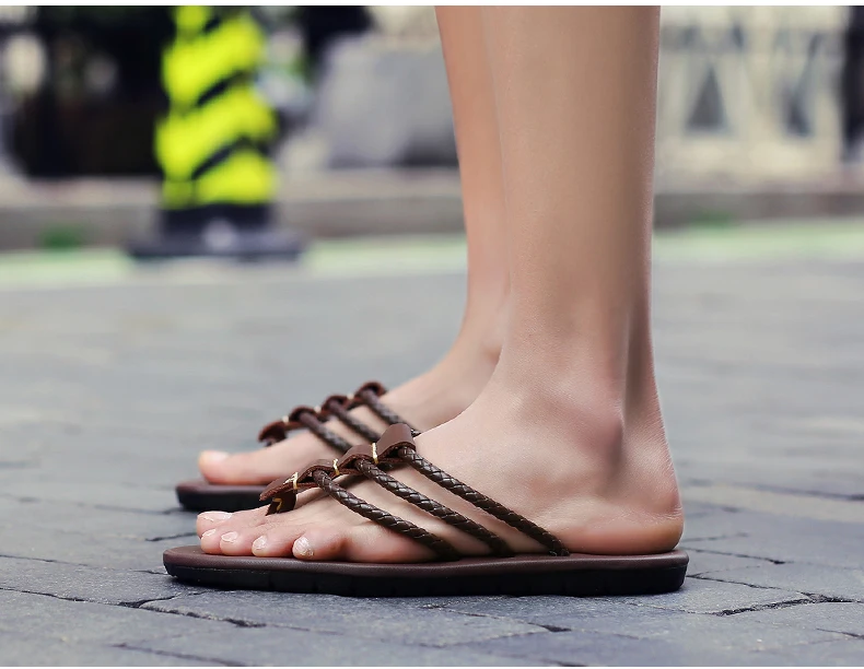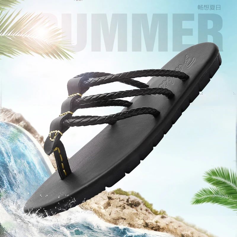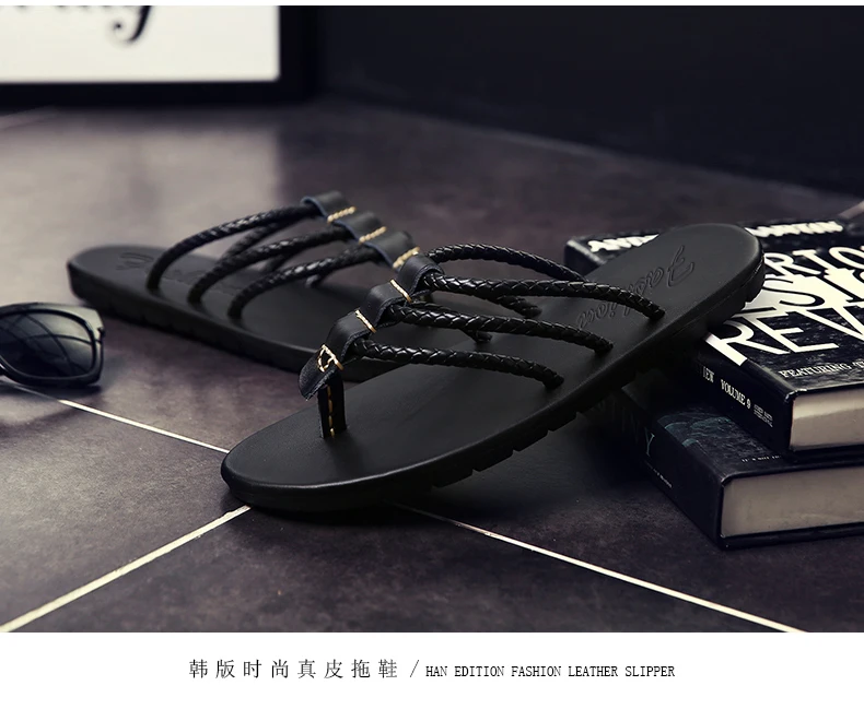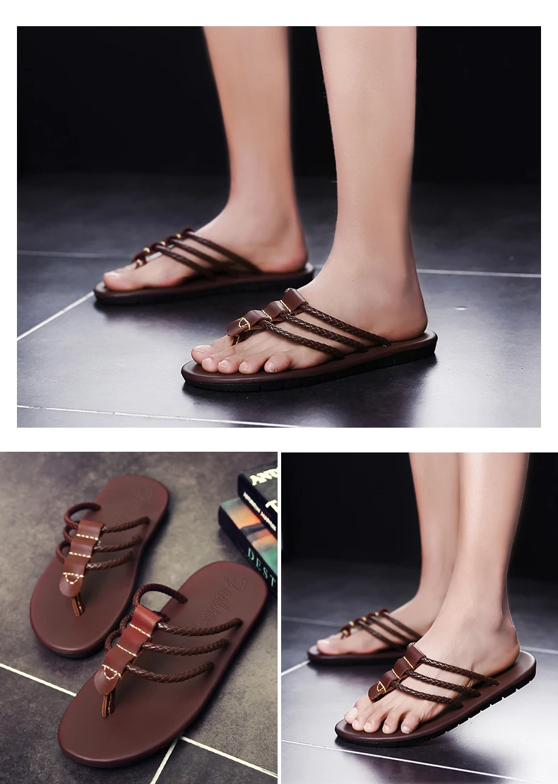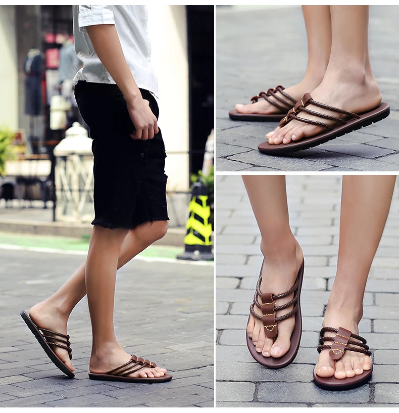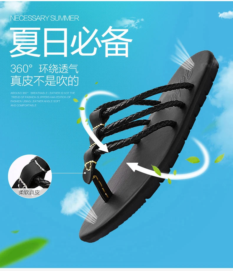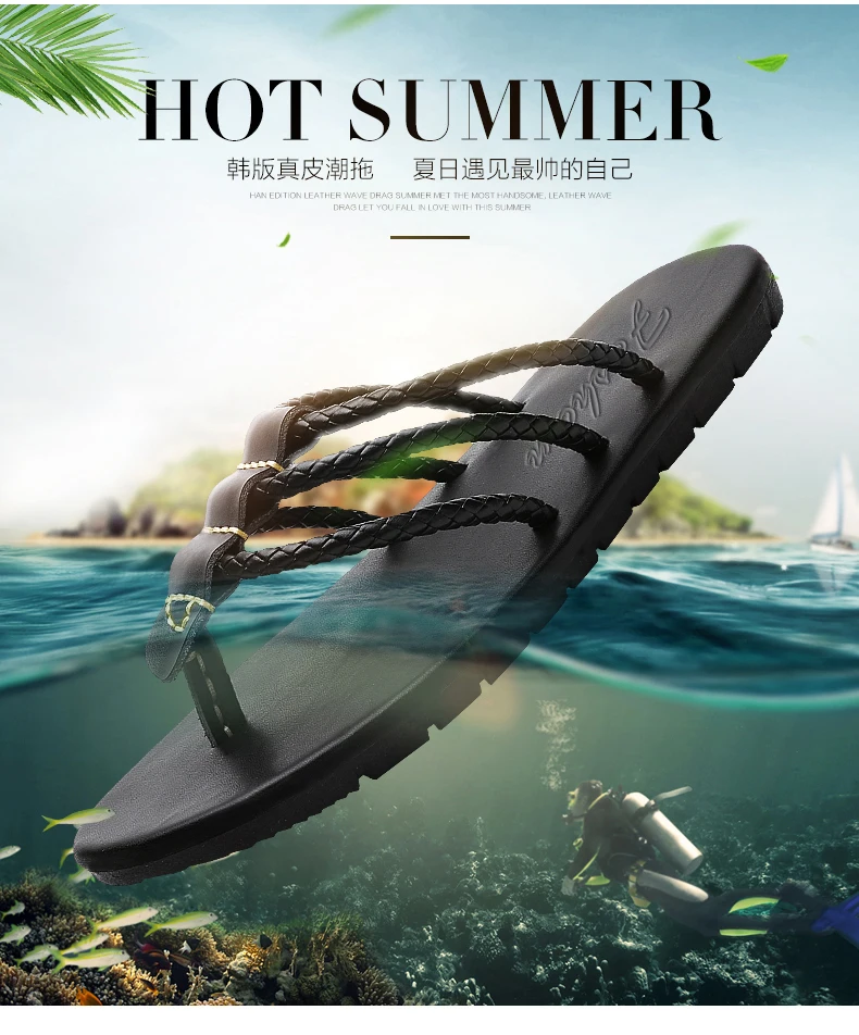 Шлепанцы мужские из натуральной кожи, пляжные сандалии, повседневна...