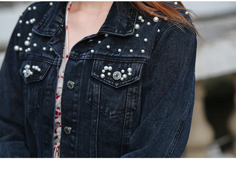 Женская джинсовая куртка, свободная джинсовая куртка на пуговицах с жемчугом, с отложным воротником, в Корейском стиле, 2021