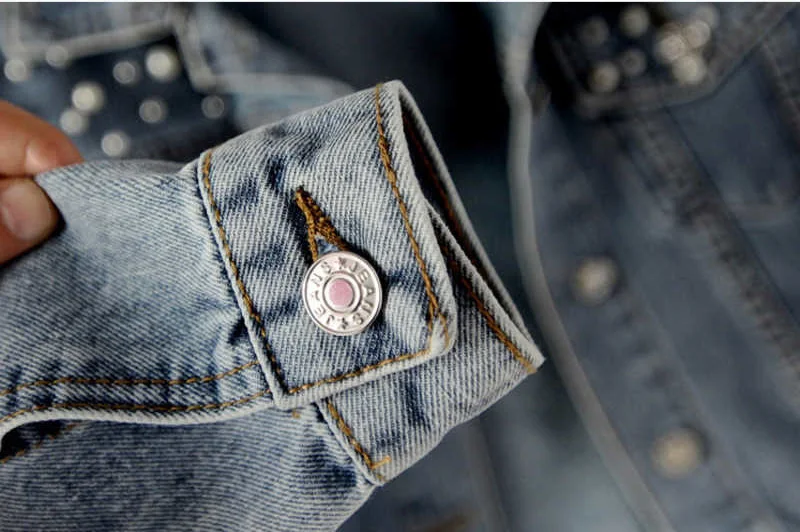 Женская джинсовая куртка 2021, женское Свободное пальто с бусинами ...