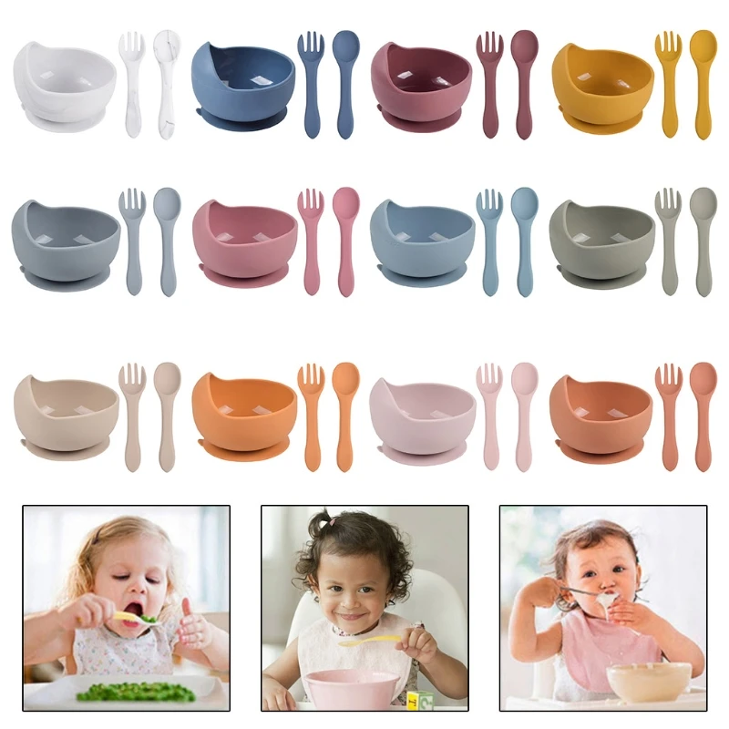 Миска для кормления ребенка, 3 шт., Нескользящая силиконовая посуда на присоске, без БФА, набор ложка и вилка