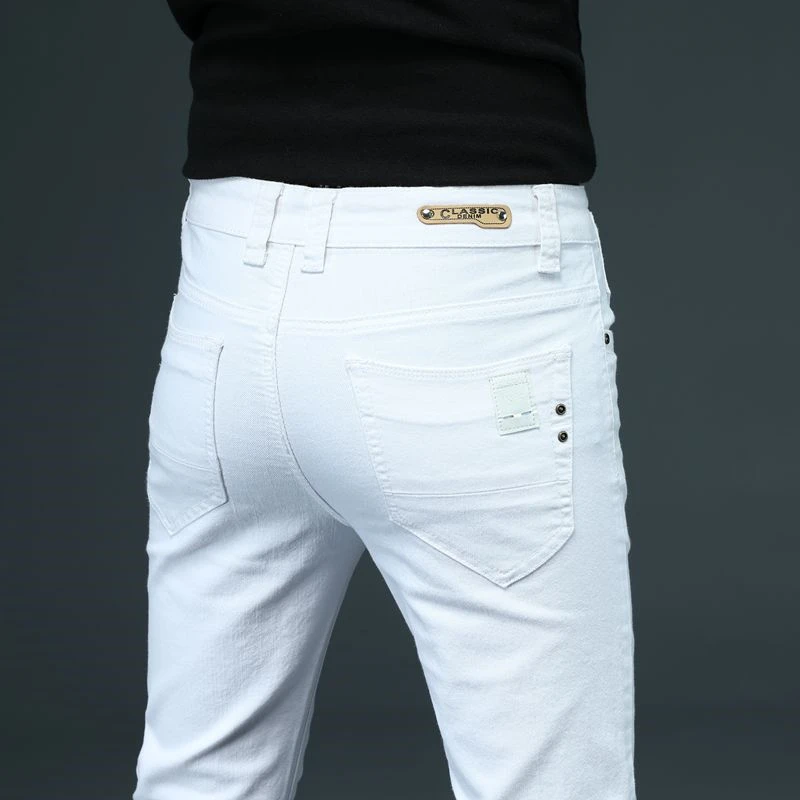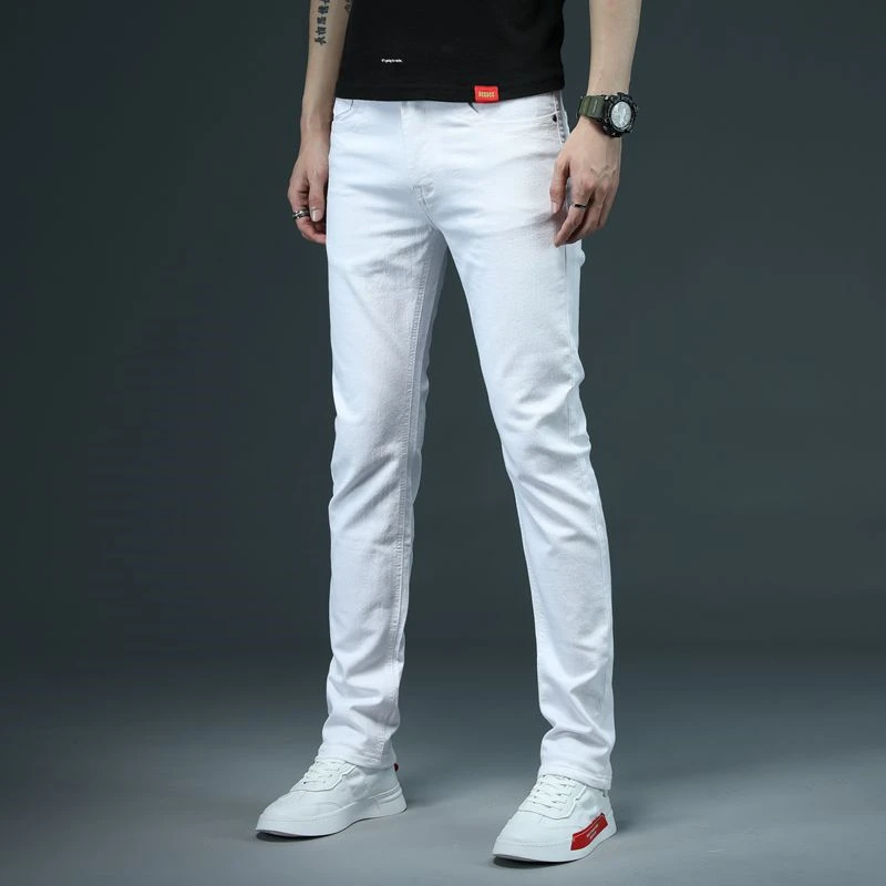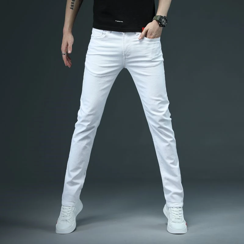 2021 узкие джинсы мужские однотонные белые мужские джинсы стрейч повседневные мужские модные джинсовые брюки повседневные Молодежные брюки для мальчиков Yong
