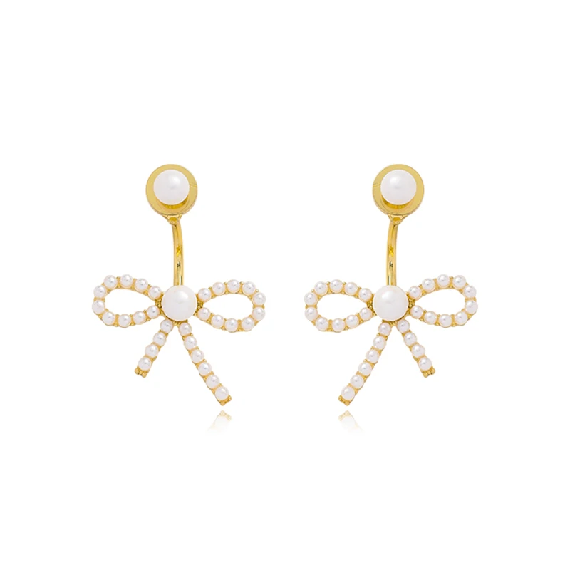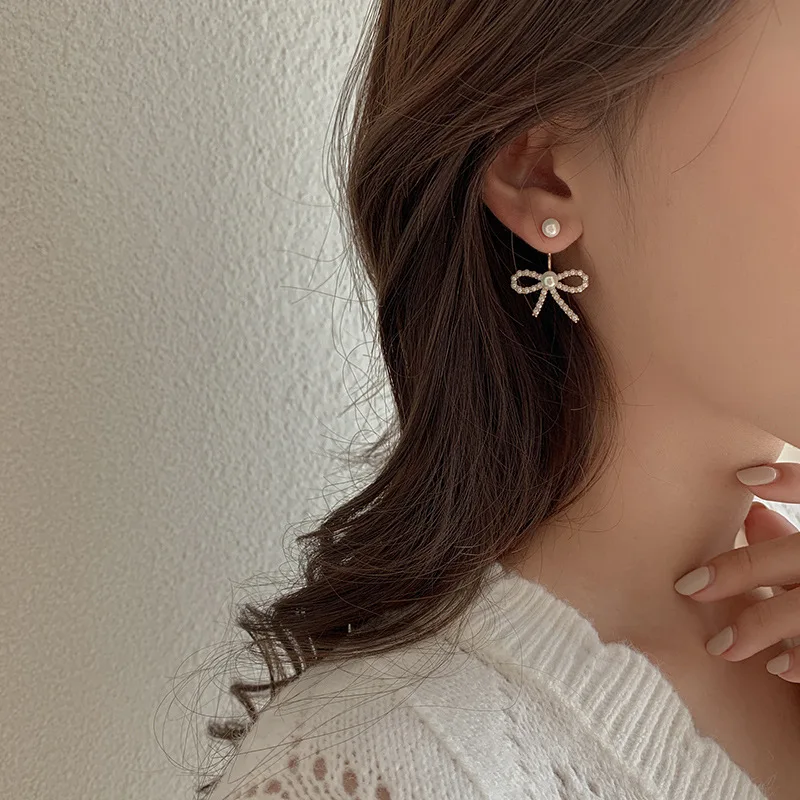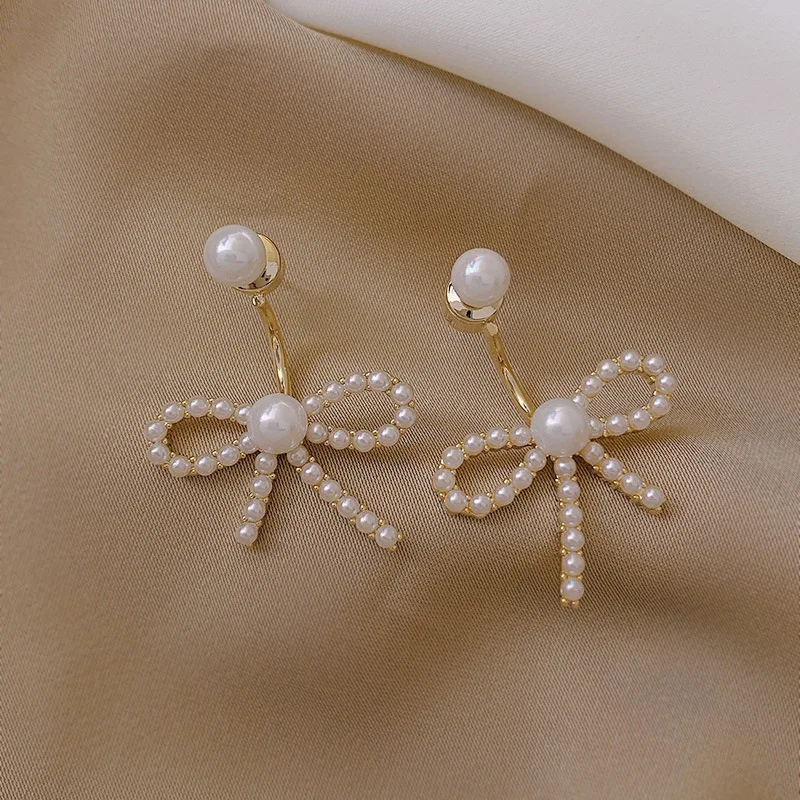Серьги с искусственным жемчугом и бантиком, простые, для женщин, для осени и зимы, свадебный подарок, ювелирные изделия, корейские серьги