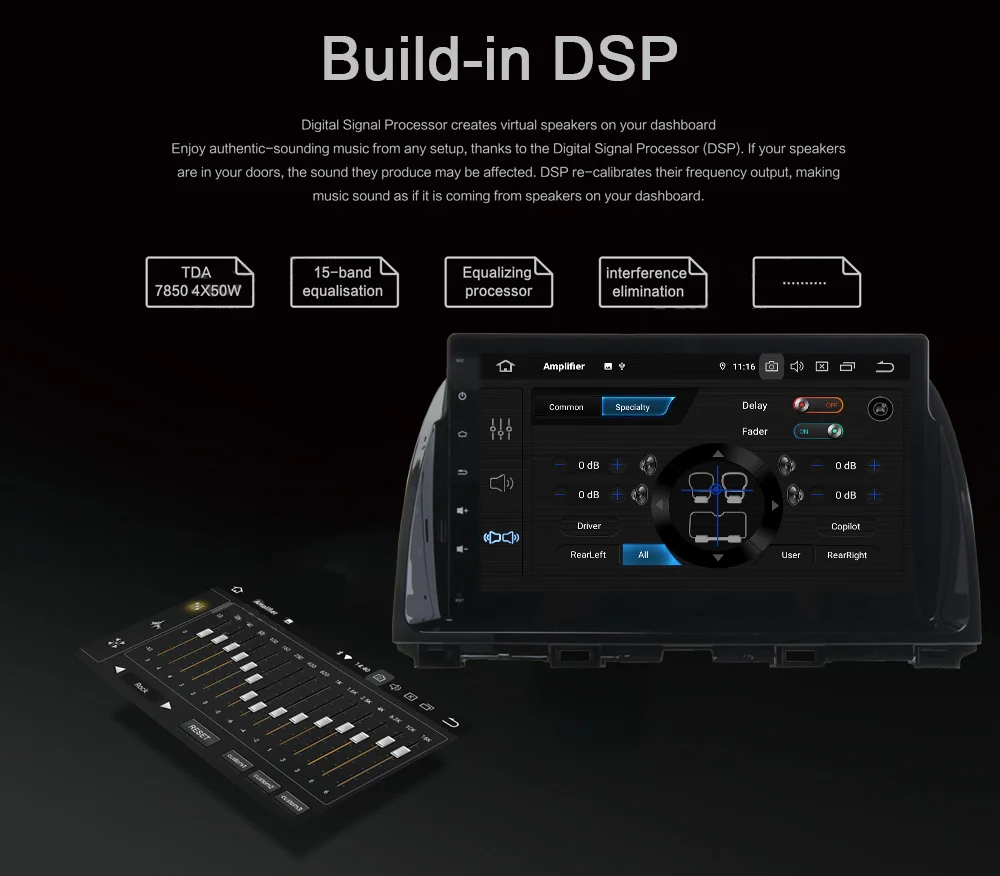 Легко создавайте собственную звуковую систему с помощью встроенного усиления 4*50 Вт, музыка звучит четко даже на большой громкости. Встроенная поп, рок, джаз, классика, плоская, пользовательская, голосовая, задержка звука, несколько вариантов настройки позволяют адаптировать звук по своему вкусу.