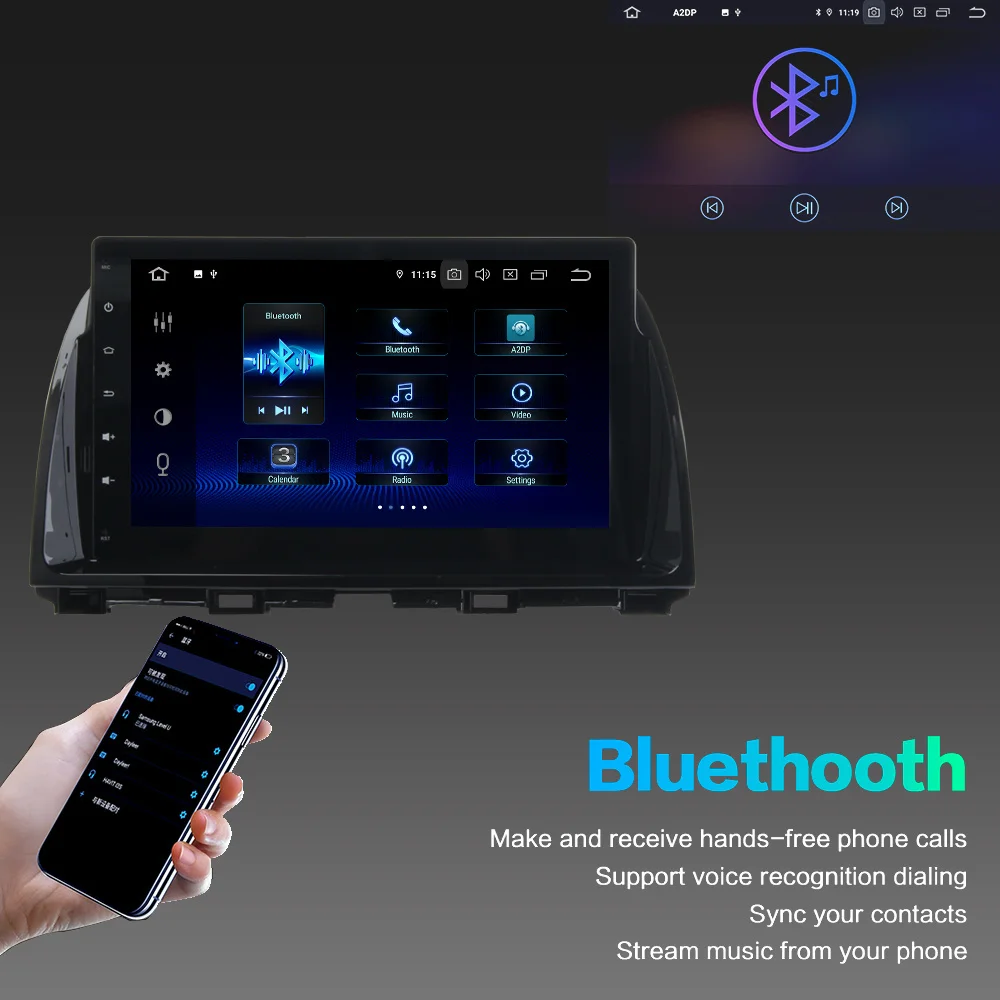 С функцией распознавания голоса и телефонной книги. Вы можете синхронизировать имя телефонной книги с вашего мобильный телефон на это устройство и сделать работу в режиме громкой связи мобильный телефон удобной и быстрой. Вы можете транслировать музыку со своего телефона через Bluetooth и наслаждаться миллионами любимых песен