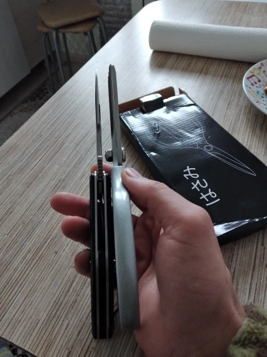 Продавец долго отправлял (обработка заказа...), но пришёл заказ за 2,5 недели из Китая, больше возни было со сбером.. Режут отлично, усилия можно приложить силой, в качестве примера режущей способности приложил разрезанный лист формата А4, сложенный 6 раз (!)