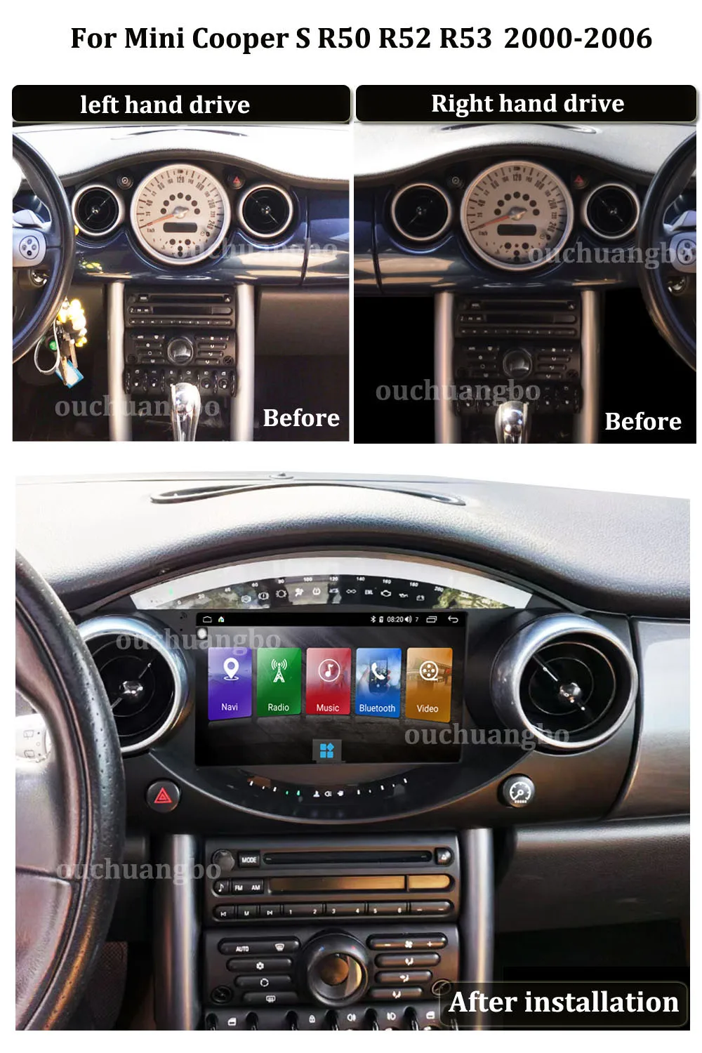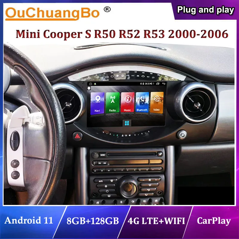 Автомагнитола Ouchuangbo, 4G, android 11, для Mini Cooper S R50 R52 R53 2000-2006, с поддержкой 8-ядерного процессора, 8 ГБ, 128 ГБ, видеоплеера Carplay