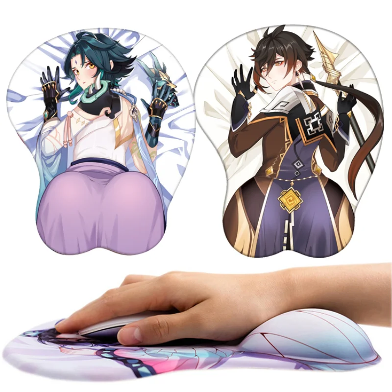 3d-коврик для мыши Genshin Impact, коврик для мыши Zhongli для косплея, силиконовый коврик для мыши с сексуальными ягодицами и подставкой под запястье, реквизит для косплея Xiao