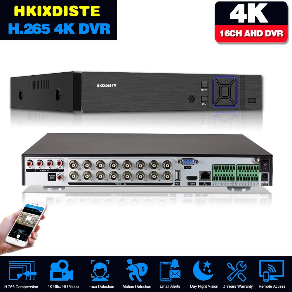 HKIXDISTE Ultra HD 16CH 4K 8MP 5MP 4MP 1080P Гибридный AHD DVR рекордер человека AI распознавание движения лица CCTV видео регистратор 16 каналов 8 каналов DVR NVR система безопасности камеры