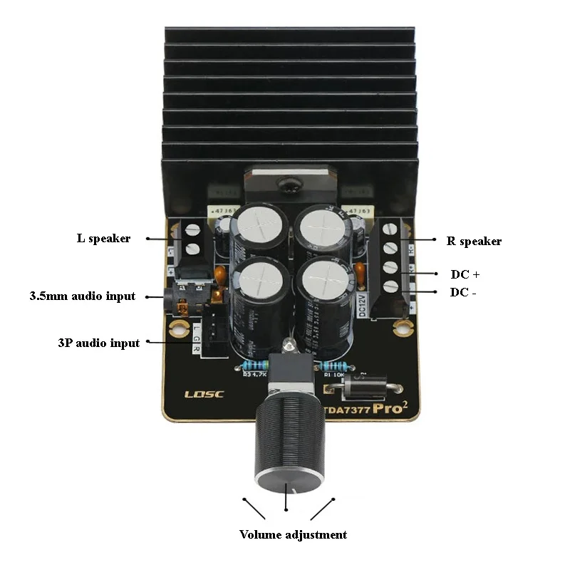 Особенности: Напряжение питания: DC9-18V, рекомендуется 12 В Выходная мощность: 4-8 Ом колонки максимум 2x35 Вт стерео (18V4 Ом) Вход метод: 3,5 мм аудио Вход/3P Расширения Вход порт Защита: защита от перегрева, короткого замыкания, перегрева Размер печатной платы: 58,67*55,12 мм Открытие ручки потенциометра: 7 мм В целом (включая радиатор): (длина * ширина * высота) 90,56*55,12 мм * 26,65 мм Акриловая оболочка-это наборы для самостоятельной сборки, ее нужно собрать самостоятельно Посылка: 1x TDA7377 Плата усилителя мощности