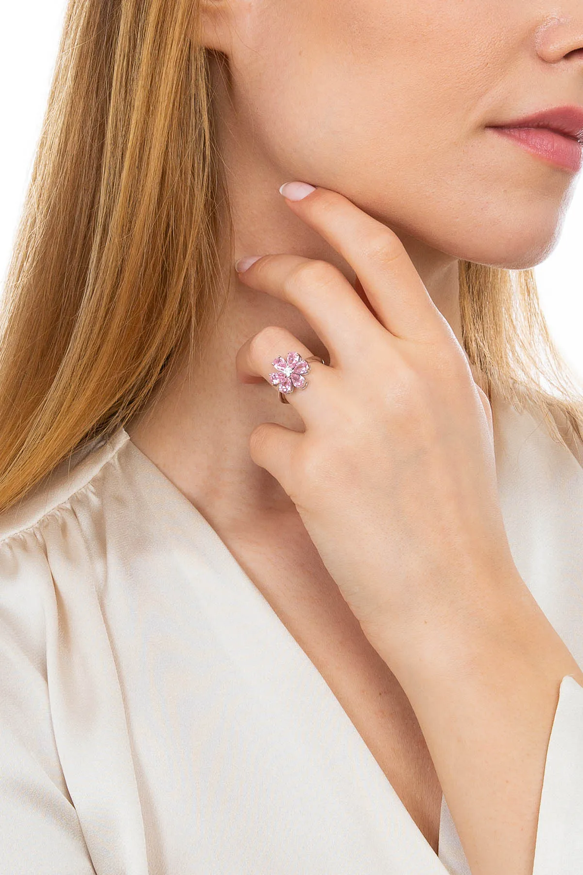 Кольцо с цветком магнолии, цирконием 2 карата, с белой грушей, с ро...