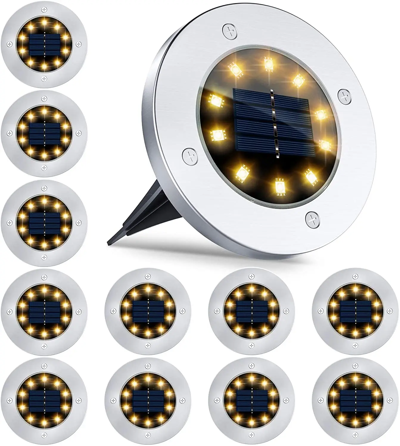 Солнечная лужайка, вилла, садовая дорожка, декоративные диски, полый наружный дорожный светильник, водонепроницаемый садовый 8 светодиодов, террасный прочный светильник