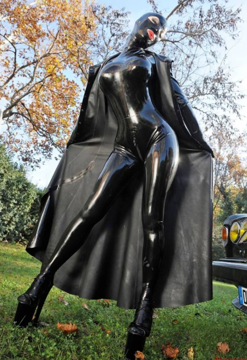 Латексная маска с капюшоном на молнии сзади для красивой девушки, о...