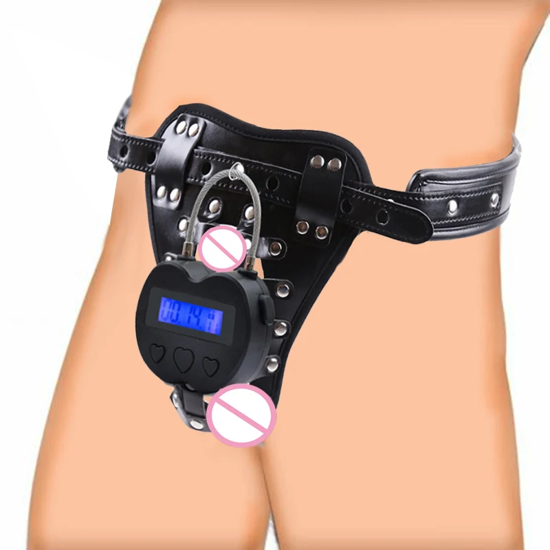 Кожаные Трусы-стринги бондаж на пенис клетка, сексуальное мужское нижнее белье трусики регулируемый пояс БДСМ электронный таймер целомудрия Блокировка Секс Инструменты