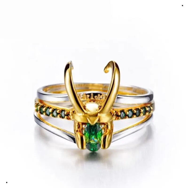 Кольца для шлема в стиле фильма Loki, зеленые кристаллы из металлического сплава, штабелируемые кольца в стиле унисекс, ювелирные изделия, реквизит для косплея, подарок для любимых