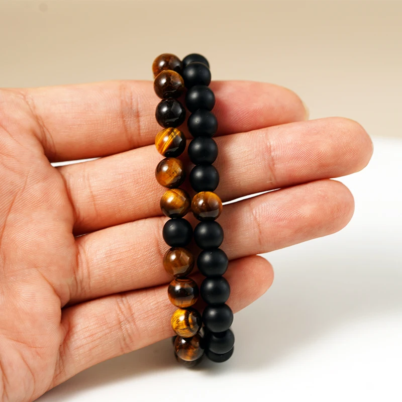 Набор браслетов для пар, черный, белый натуральный лавовый камень, тигровый глаз, бусины, аксессуары для мужчин и женщин, эластичная веревка, ювелирные изделия