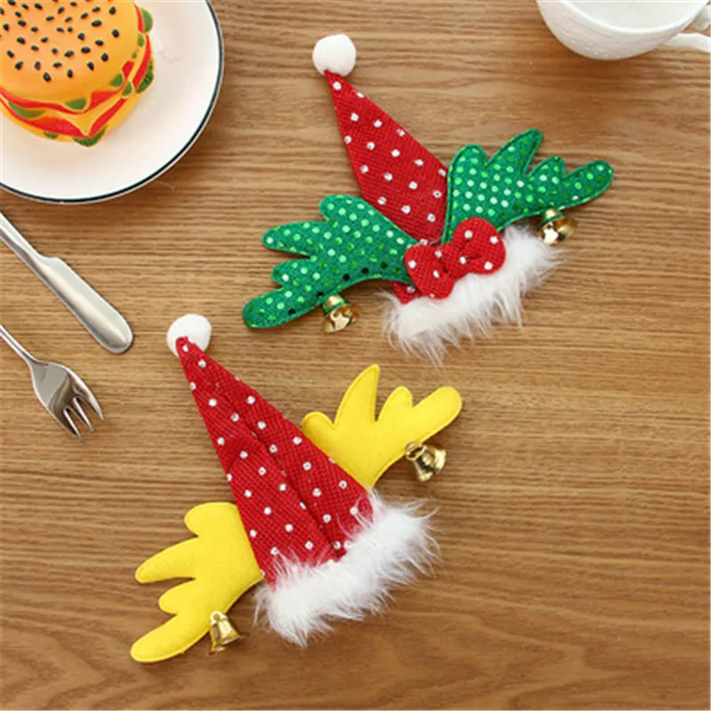 Рождественский новогодний карман в виде шапки Санты, оленя, вилка, ...