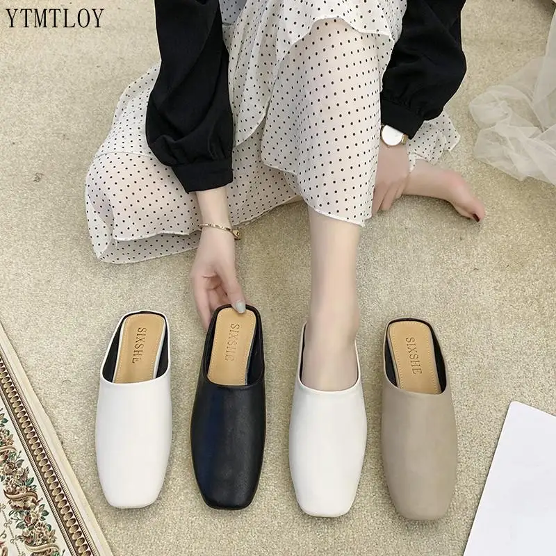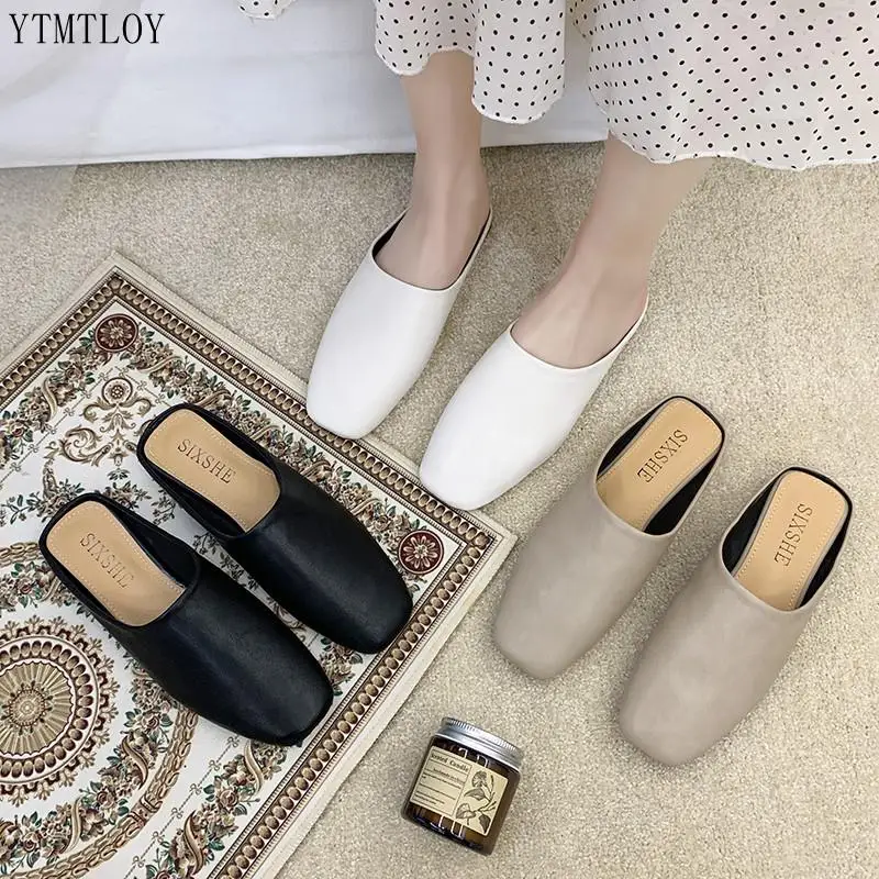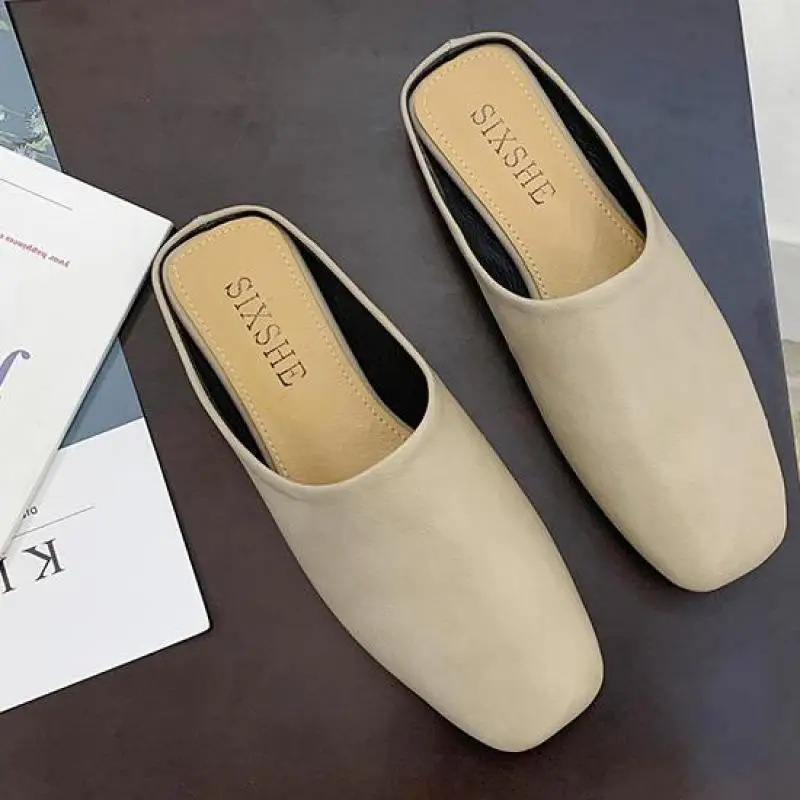 Женские кожаные туфли на плоской подошве, однотонные тапки без задника, повседневные, праздничные, Осенние, 2022