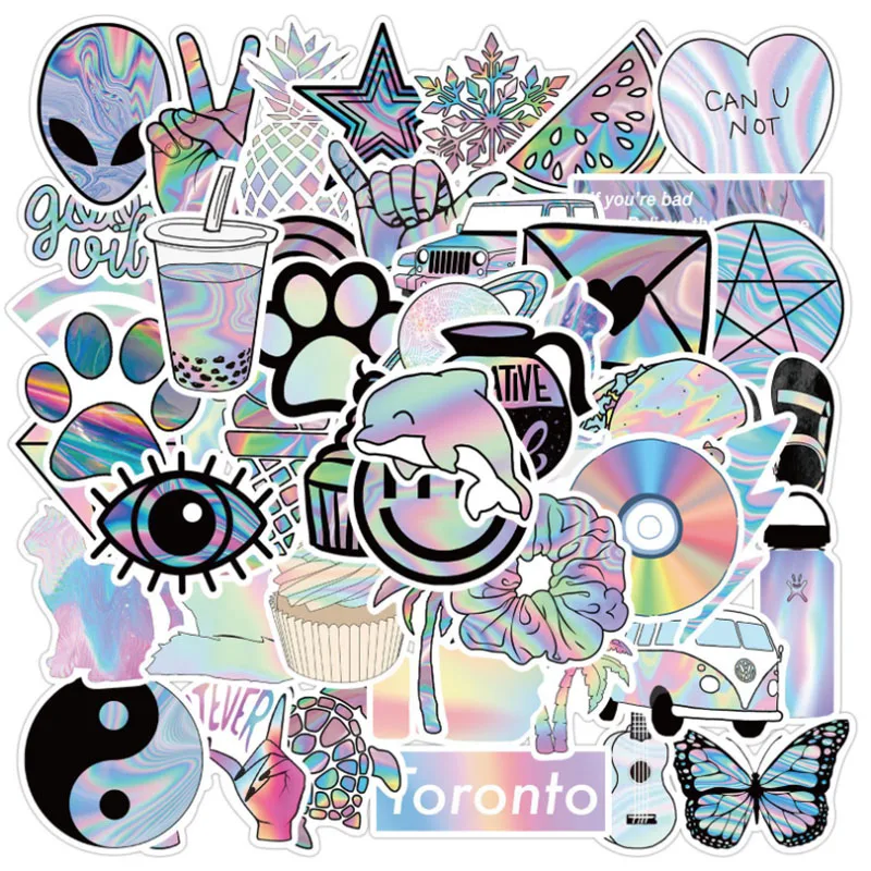 103050 шт. Голографический лазерный граффити для девочек Водонепроницаемый скейтборд Дорожный чемодан телефон ноутбук чемодан наклейки