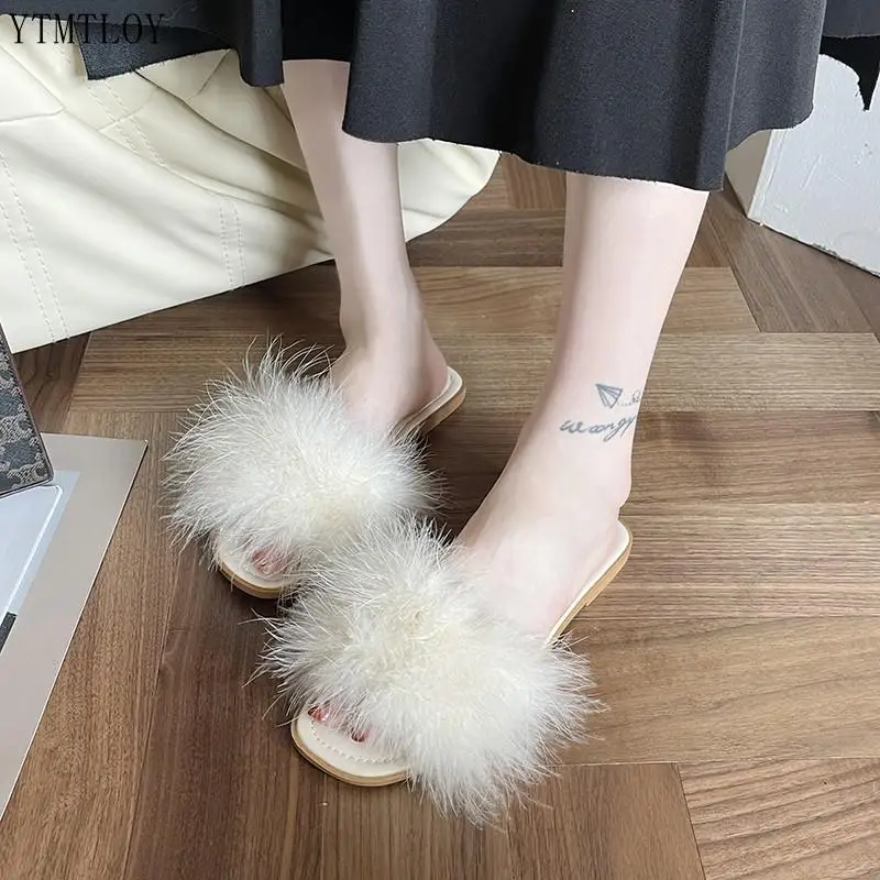 Женские туфли с жемчугом, плоская подошва, домашние весенние тапки,...