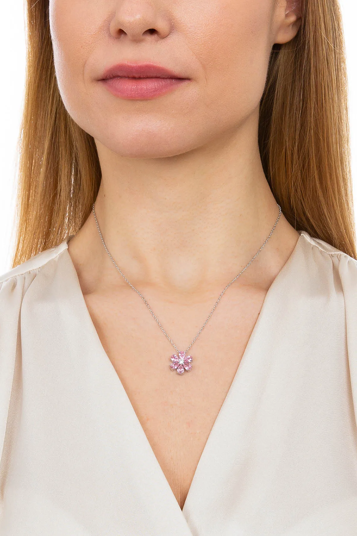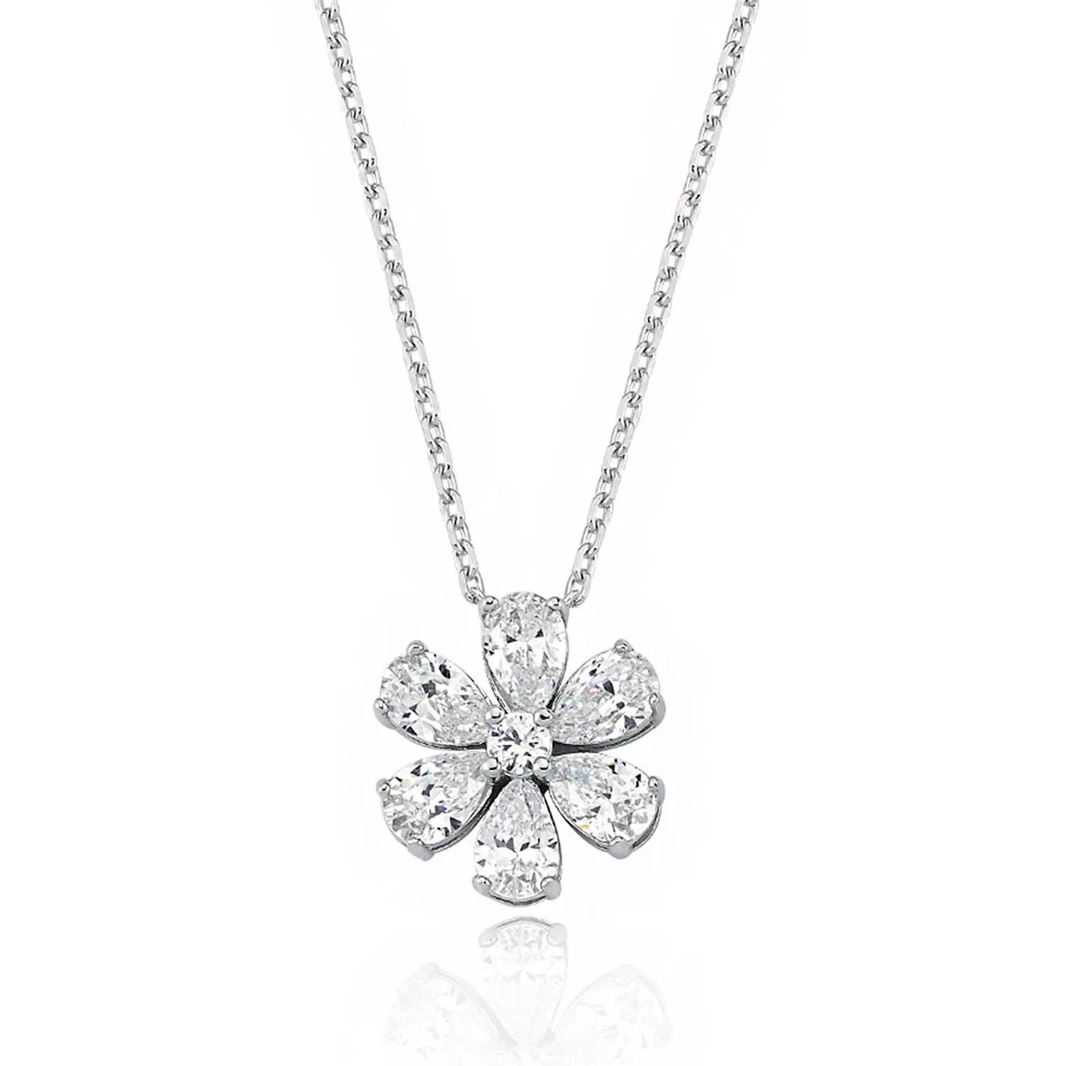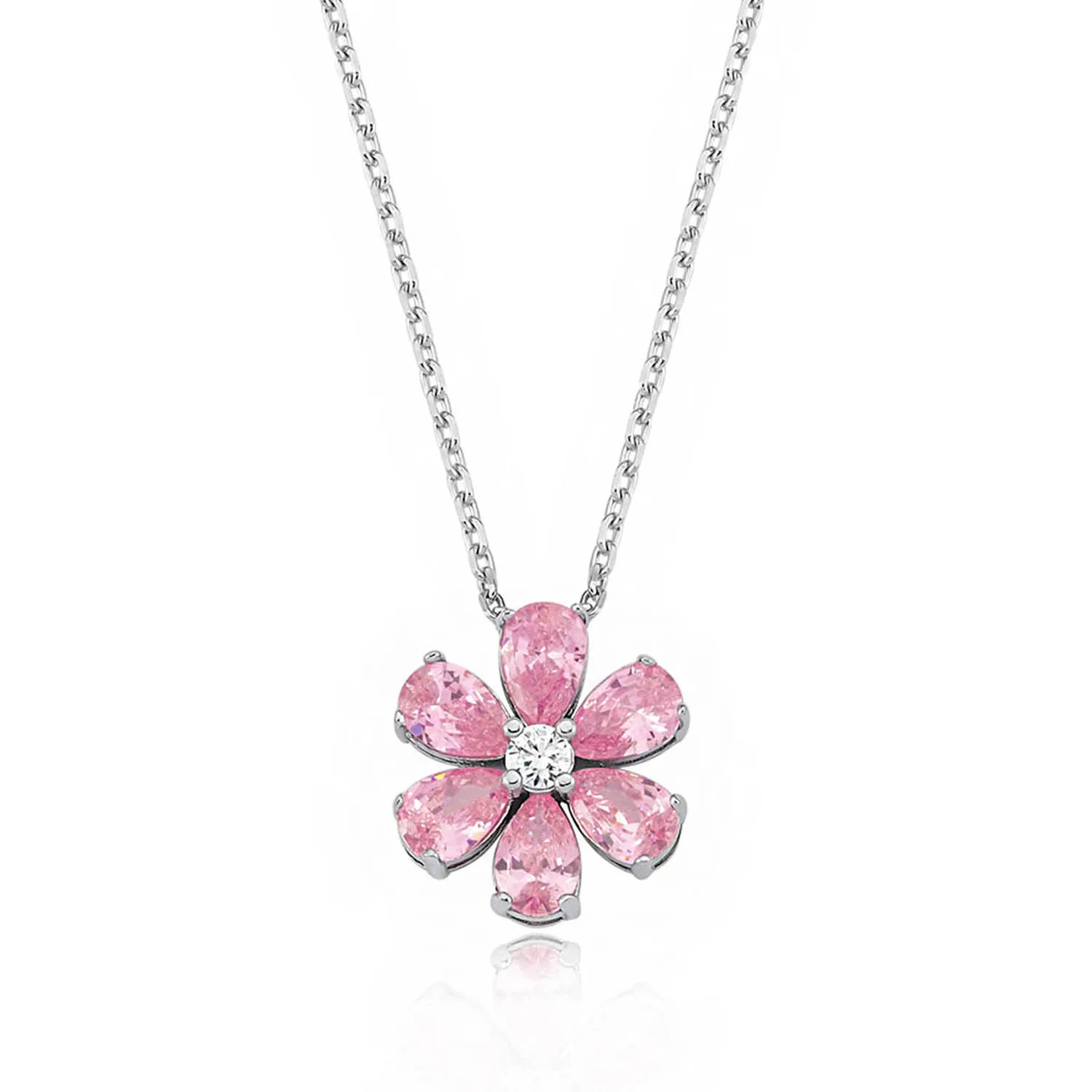 Ожерелье Valori Jewels Forget Me Not, циркон 2 карата, розовая груша, родиевое покрытие, серебро 925 пробы, ювелирные украшения