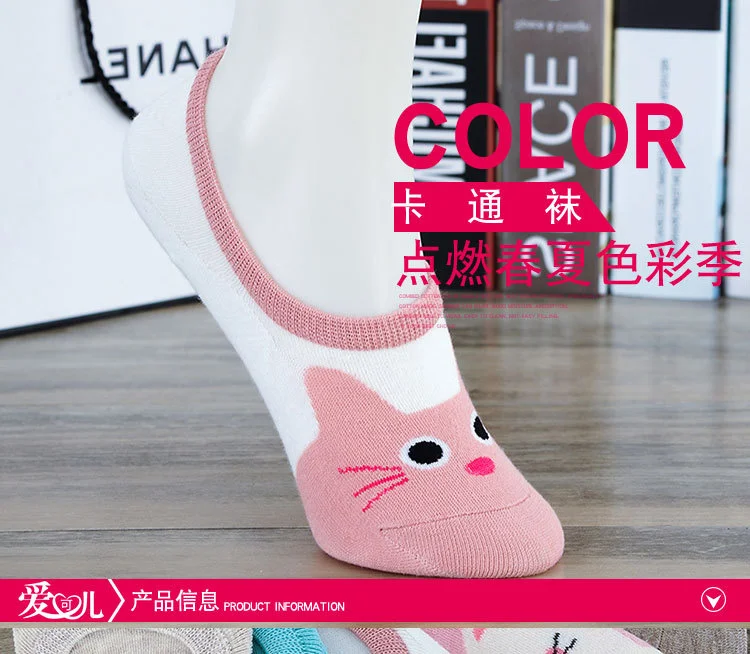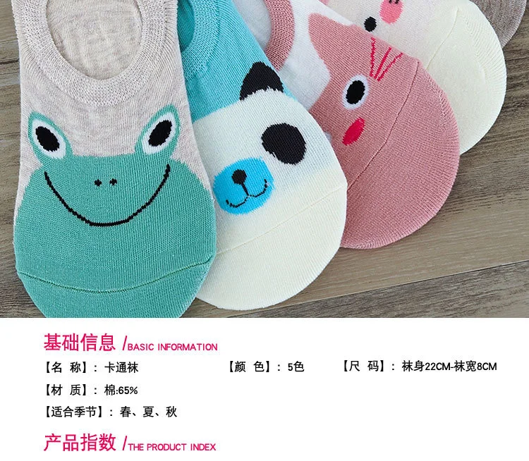 Носки женские весенние Нескользящие, дышащие короткие носки в Корейском стиле, с принтом животных, кошек, собак, панд, размер 34-40, 5 пар