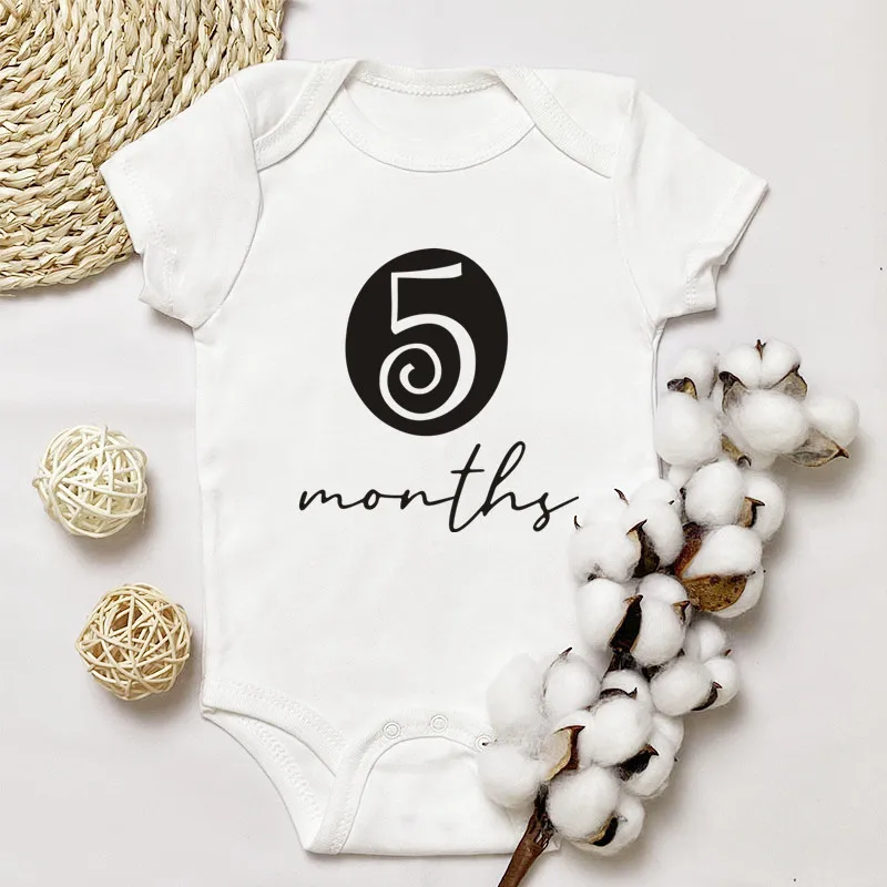 Детское ежемесячное боди, комбинезон для новорожденных, для мальчиков и девочек, унисекс, Детские боди, комбинезоны с ежемесячным принтом, повседневная одежда для младенцев