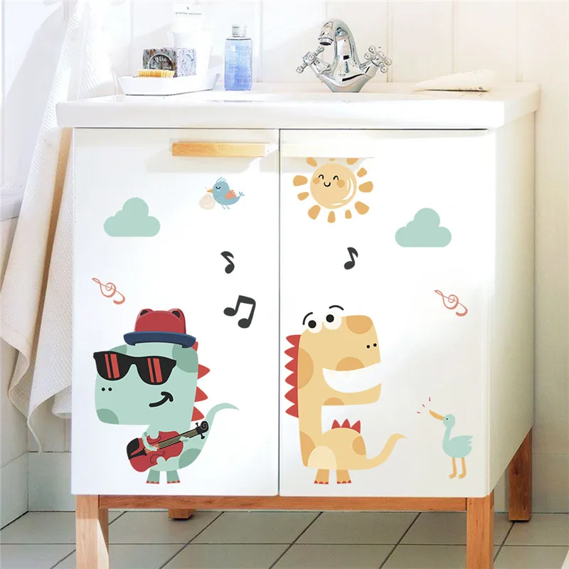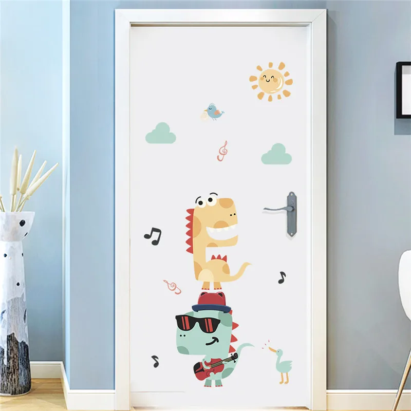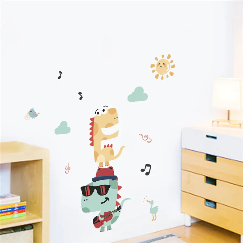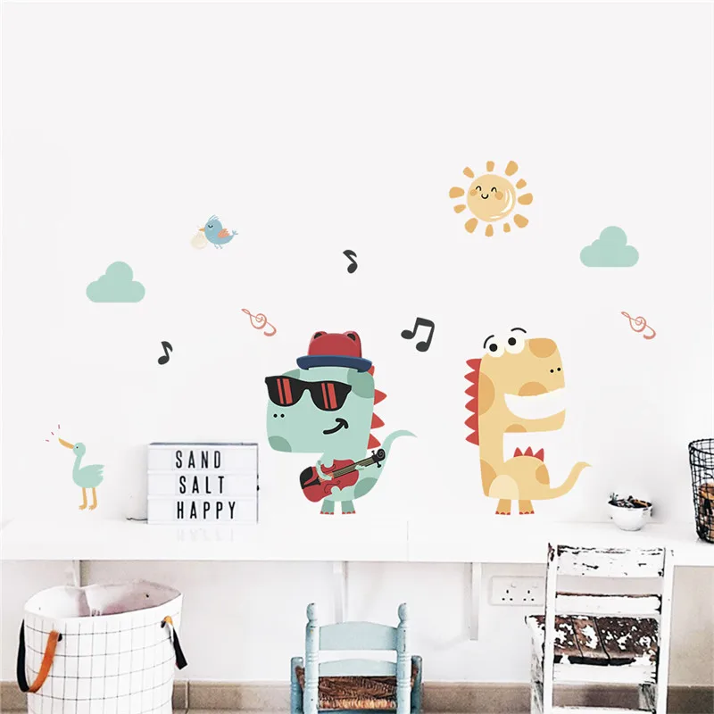 Милые динозавры Наслаждайтесь музыкой наклейки на стену для детской комнаты спальни украшения дома Мультфильм Сафари настенное Искусство Diy животных наклейка плакат