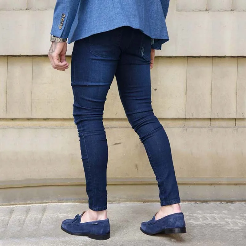 Джинсы мужские облегающие, Стрейчевые брюки из денима с эластичным поясом, повседневные штаны для бега в уличном стиле