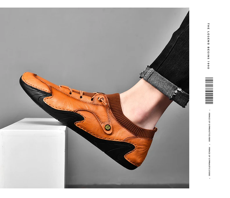 Мужские кожаные лоферы ручной работы, классические уличные дышащие Нескользящие Мокасины, повседневная обувь