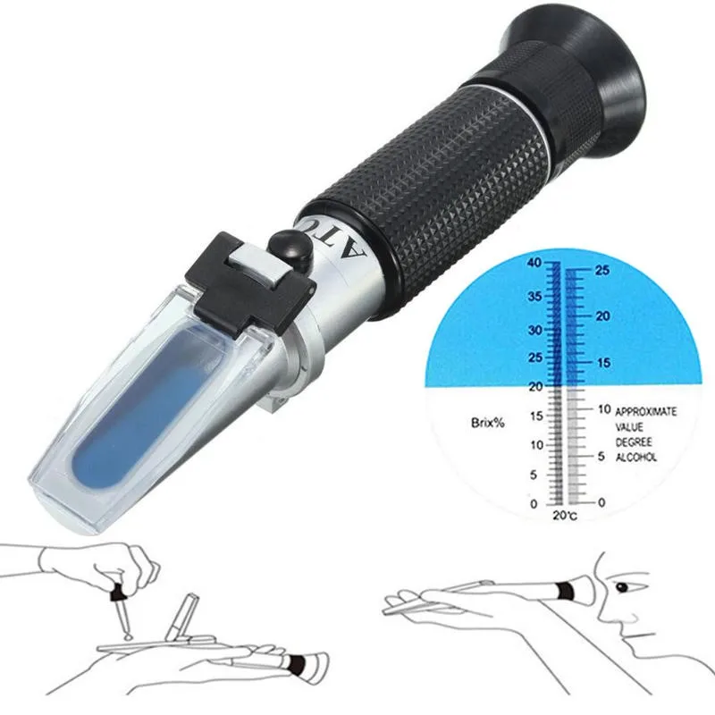 Рефрактометр - ручной портативный прибор, предназначенный для измерения концентрации сахара и алкоголя. Незаменим для виноградарей, виноделов и пивоваров. С помощью рефрактометра можно узнать необходимые показатели всего по одной капле сока (сусла, браги).