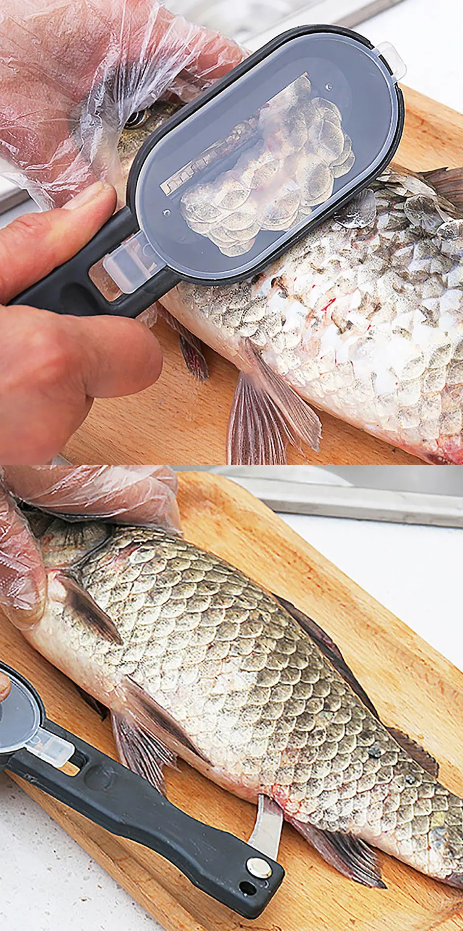 Щетка для рыбной кожи 2 в 1, пластиковый скребок для быстрого удаления рыбьей чешуи с ножом, инструменты для очистки рыбы, кухонные аксессуары для готовки
