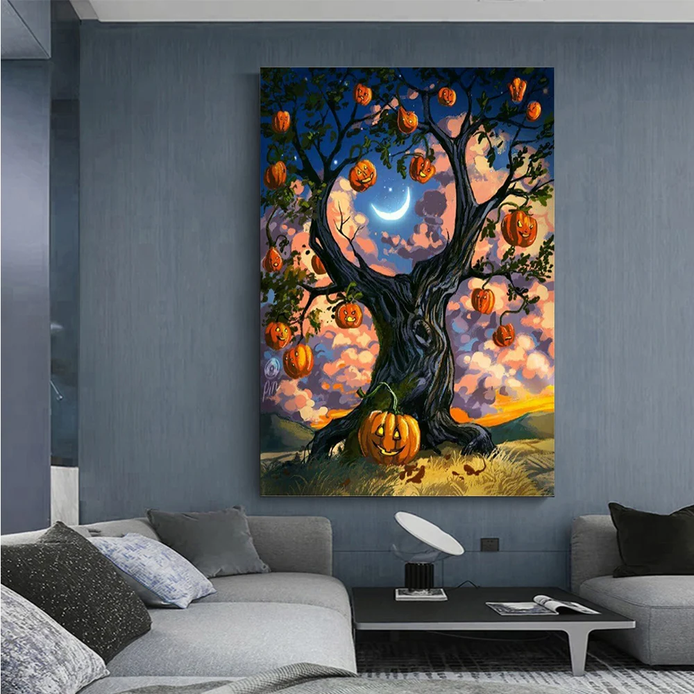 Алмазная живопись с изображением тыквы, дерева 5D, сделай сам, мультяшная вышивка на Хэллоуин, Набор для вышивки крестиком, тыква стразы, домашний декор