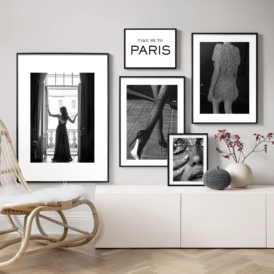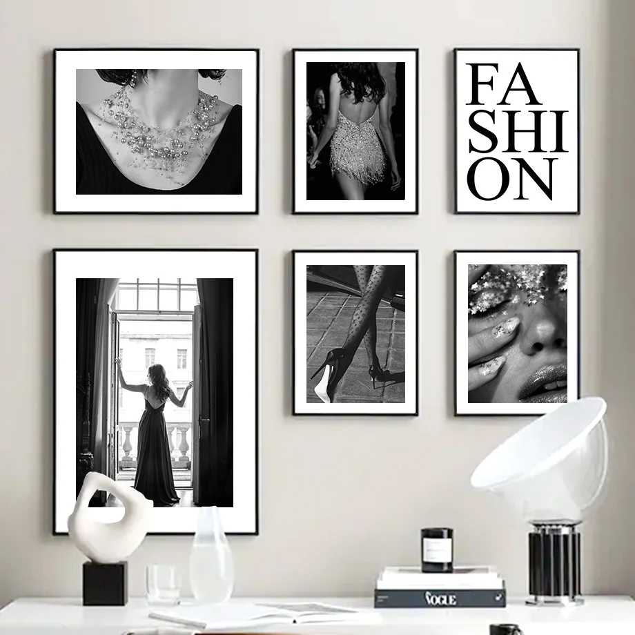 Модное черно-белое платье для ногтей для девочек, роскошное настенное искусство, холст, картина, скандинавский постер и принты, настенные картины для декора гостиной