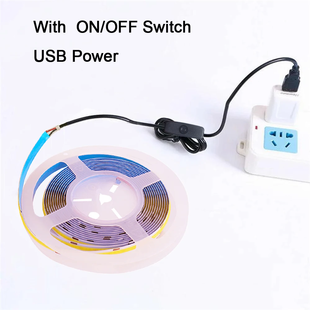 Светодиодная лента COB, 5 В, питание от USB, с переключателем включениявыключения, линейный светильник высокой плотности, 5 в постоянного тока, 320 светодиодовм, гибкая светильник вая лента для самостоятельного светодиодного декора