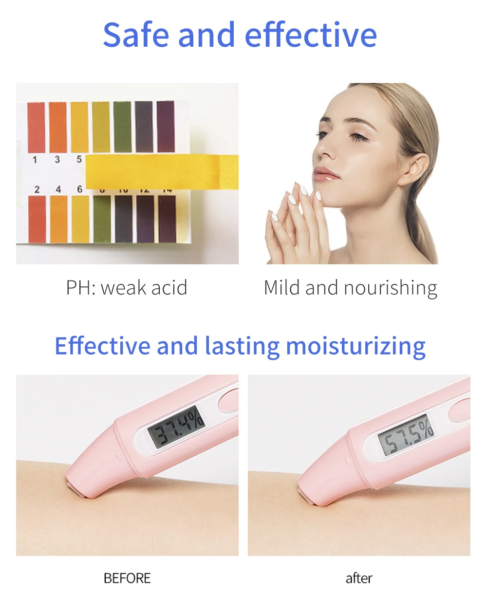 1. Гиалуроновая кислота-Как ubstance с превосходным увлажняющим свойством в природе, и делает сухую и грубую кожу мягкой, нежной и эластичной.